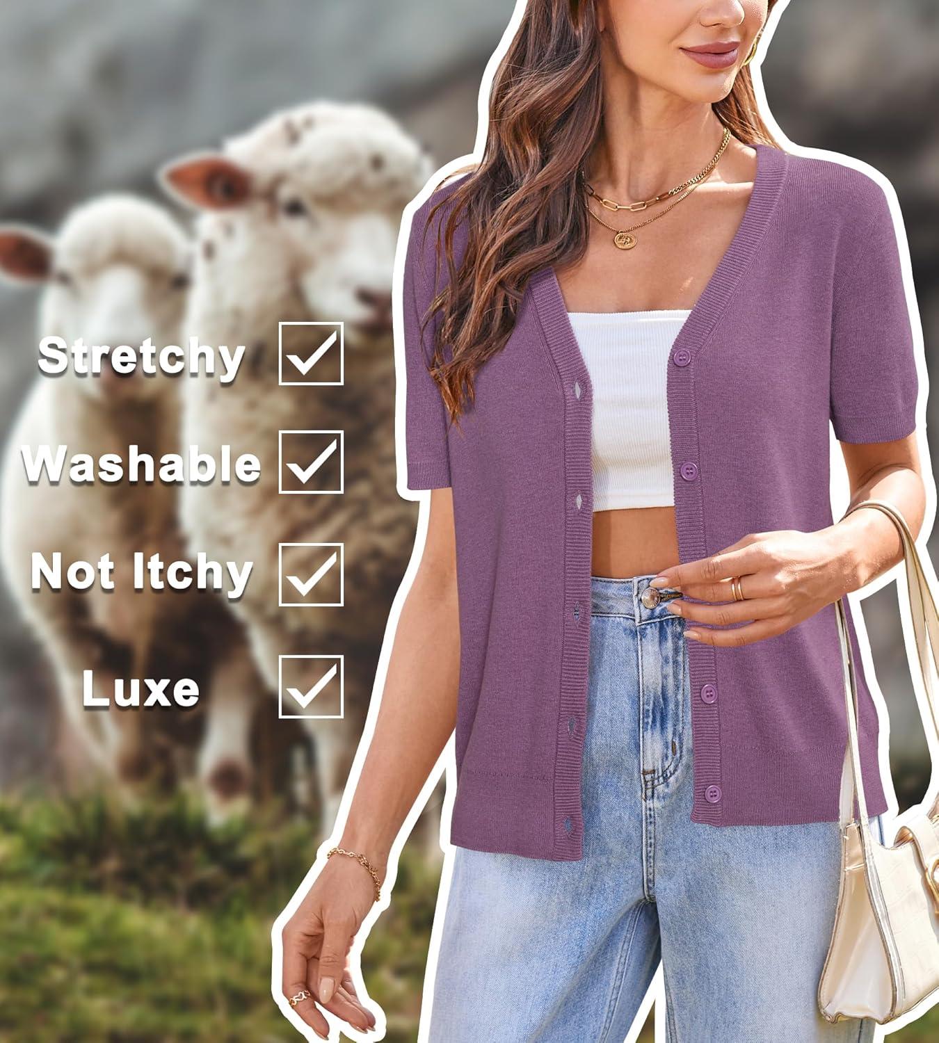 Arach&Cloz Women’s Wool Blend Business Casual Cardigan Sweaters 2025(Purple)