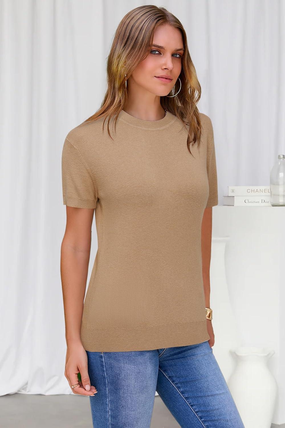 Arach&Cloz Women’s Wool Blend Business Casual Essential Fall Layering Pullover Sweaters(A-camel02)