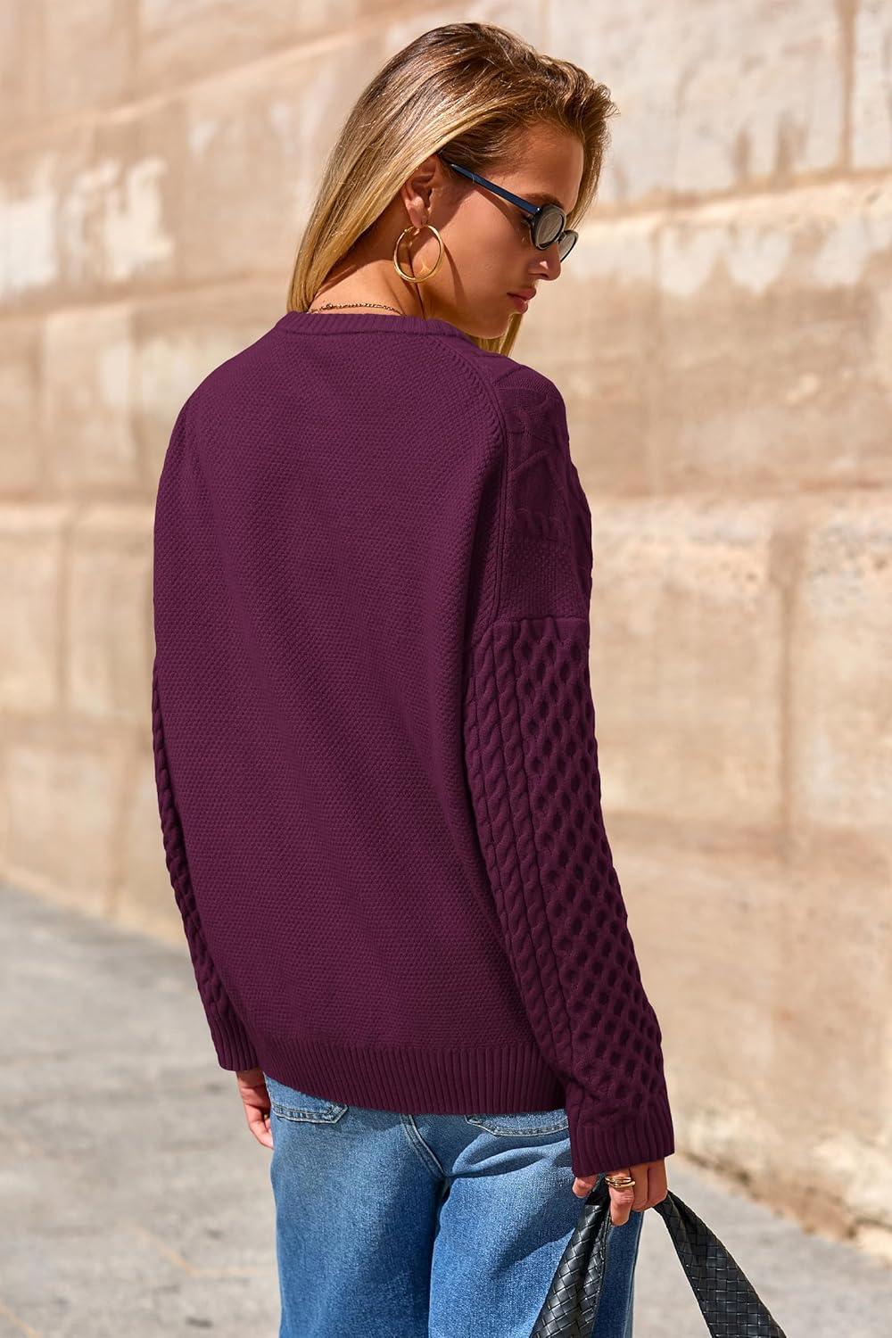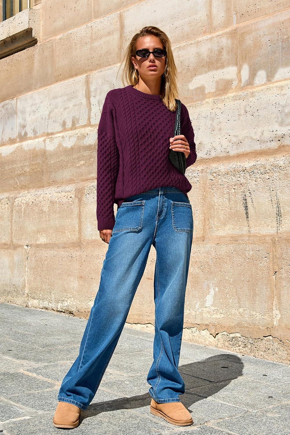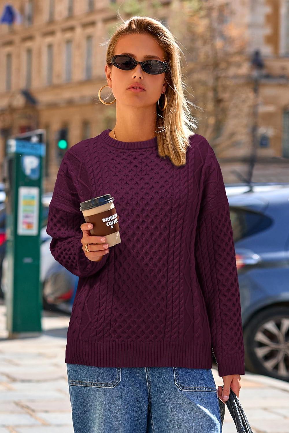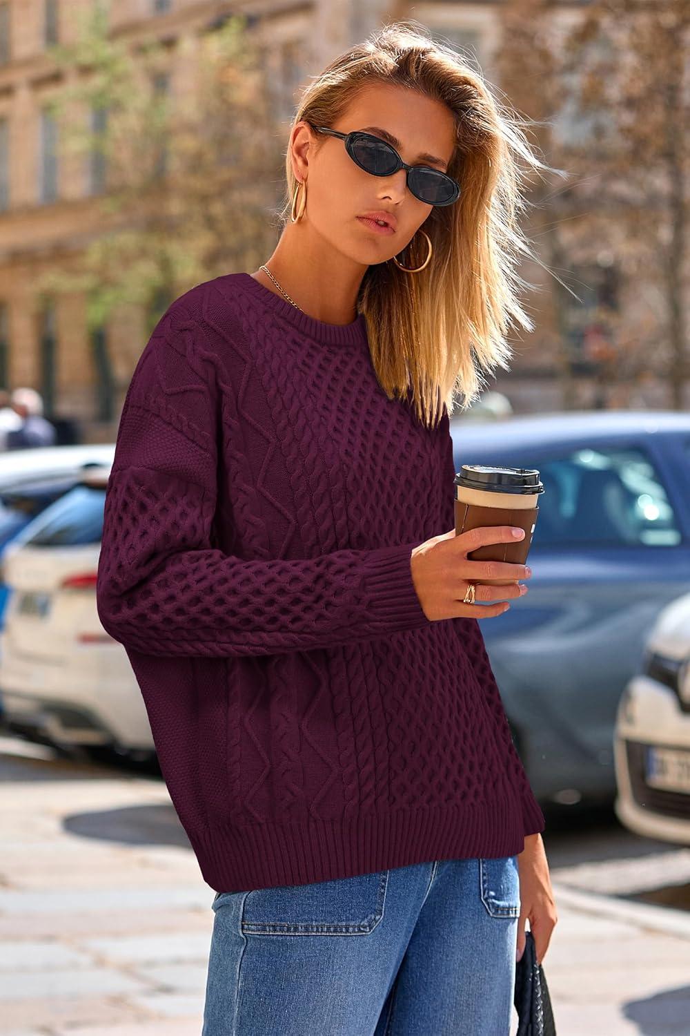 Arach&Cloz Women’s Wool Blend Cable Knit Fall Winter Chunky Oversized Sweaters 2025(Burgundy Dark Red)