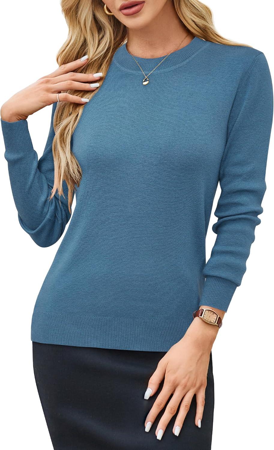 Arach&Cloz Women’s Wool Blend Classic Crew Neck Casual Fall Sweaters(A-blue)