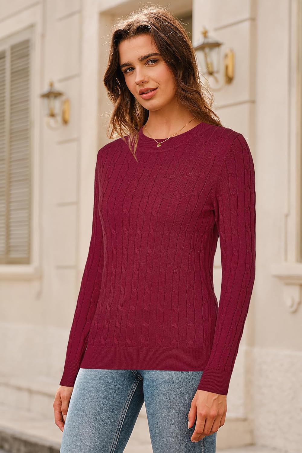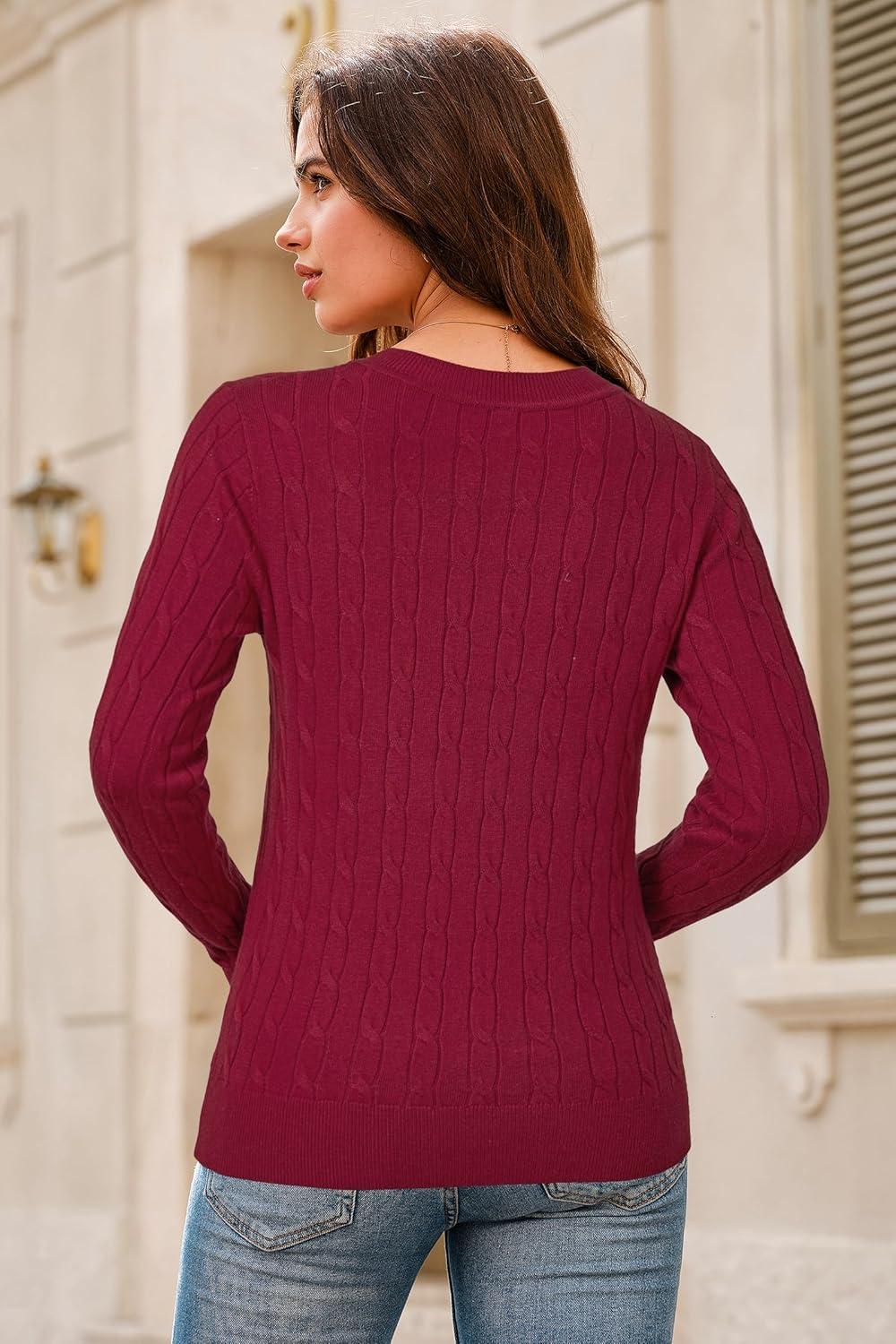 Arach&Cloz Women’s Wool Blend Classic Crew Neck Casual Fall Sweaters(Cable-burgundy)