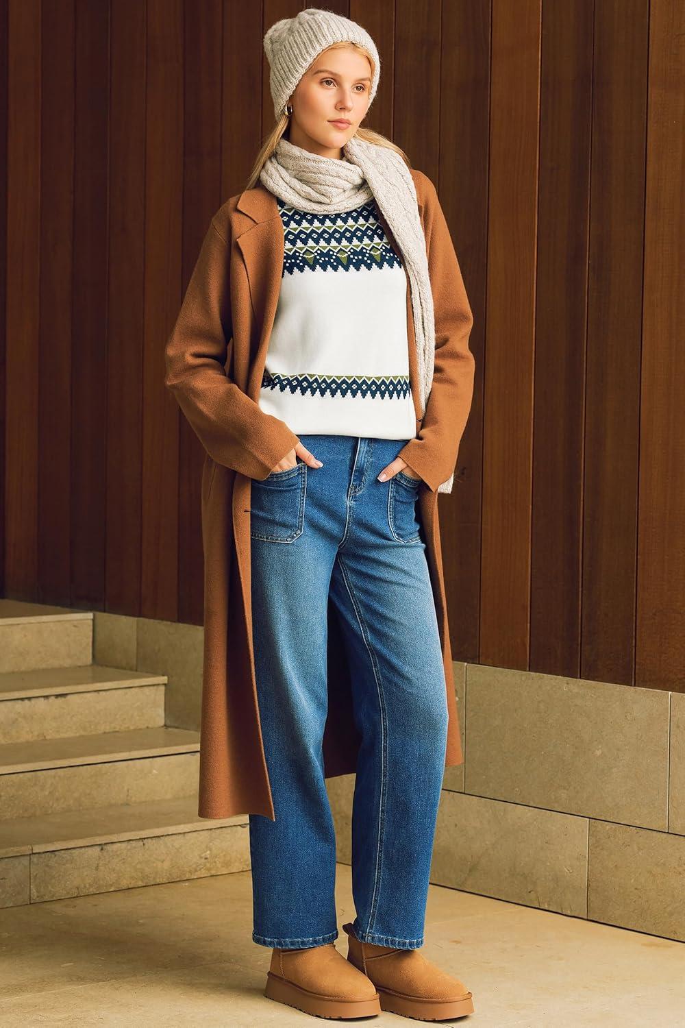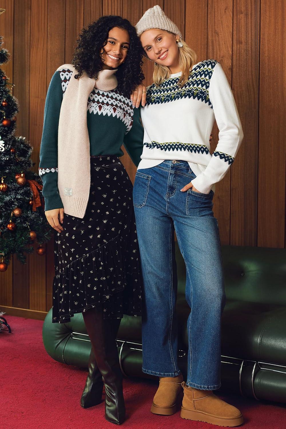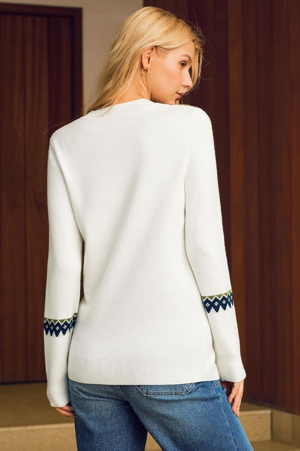 Arach&Cloz Women’s Wool Blend Classic Crew Neck Casual Fall Sweaters(Fair Isle-off-white)
