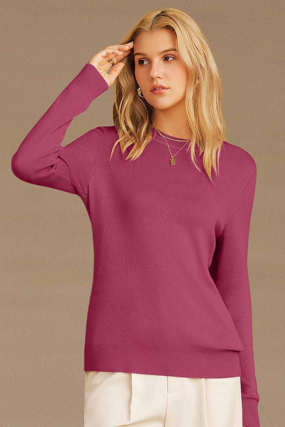 Arach&Cloz Women’s Wool Blend Classic Crew Neck Casual Fall Sweaters(Raspberry Pink)
