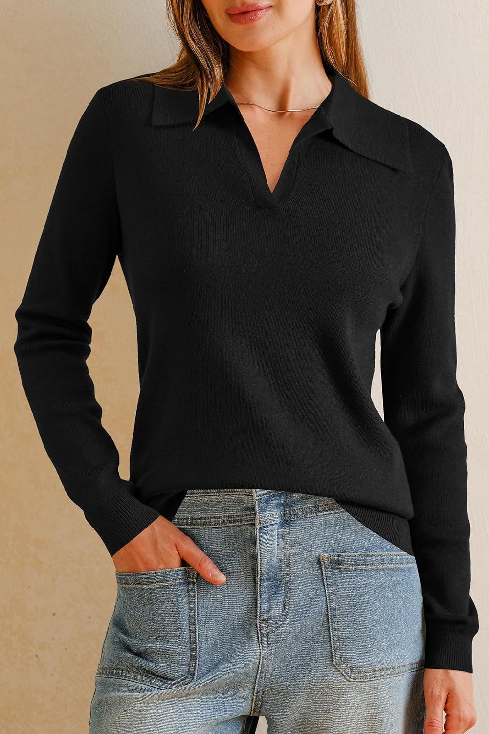 Arach&Cloz Women’s Wool Blend Collared Fall Pullover Sweaters Business Casual Outfits 2025(Black)