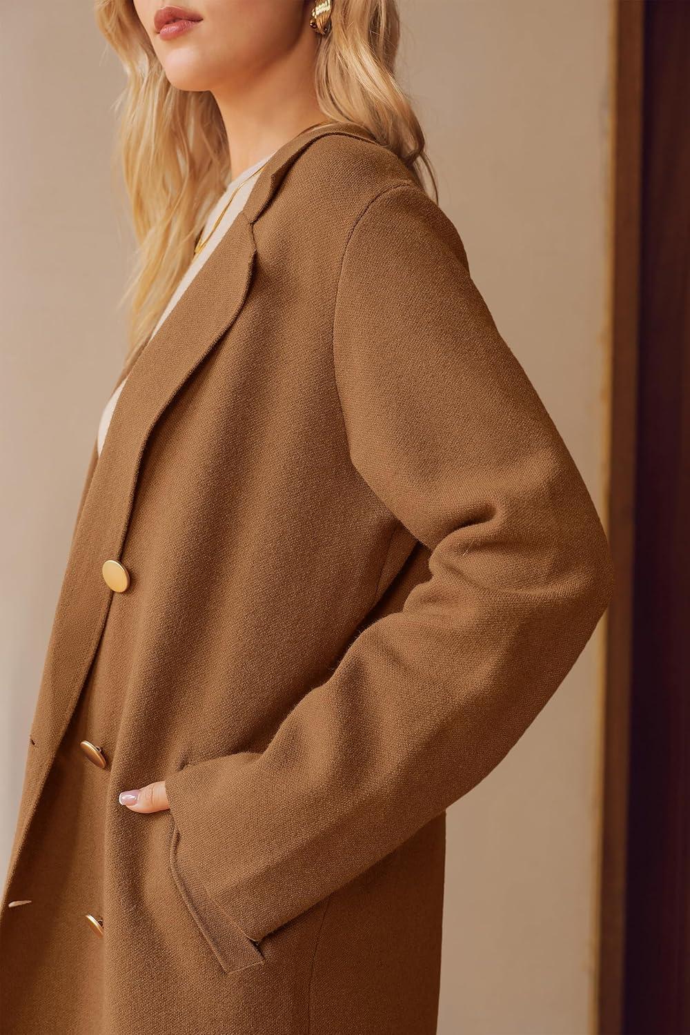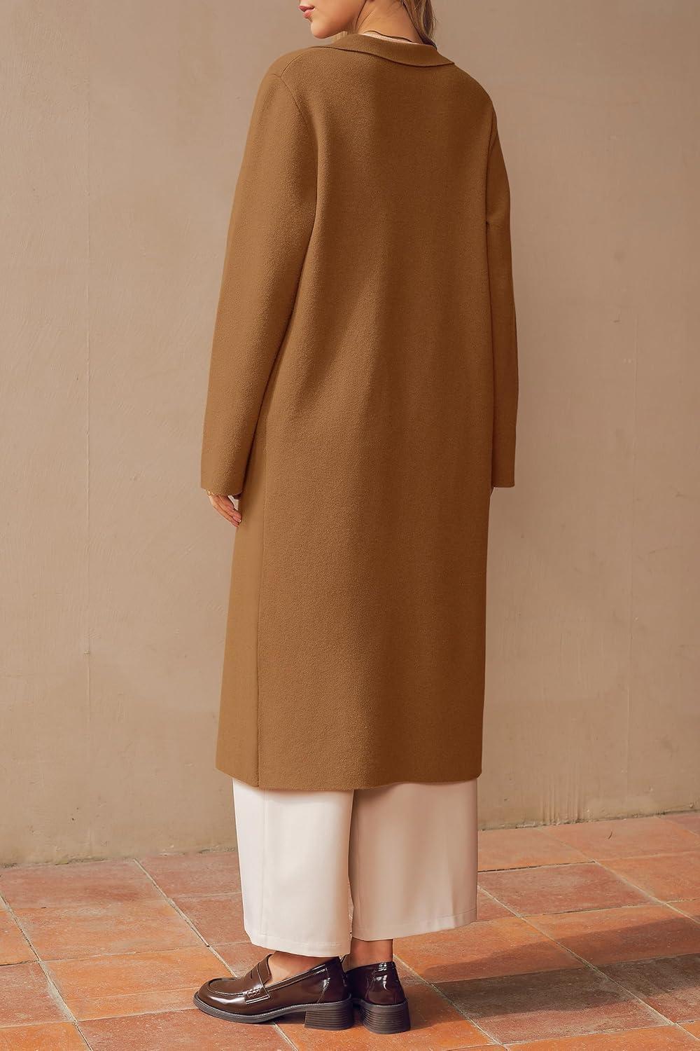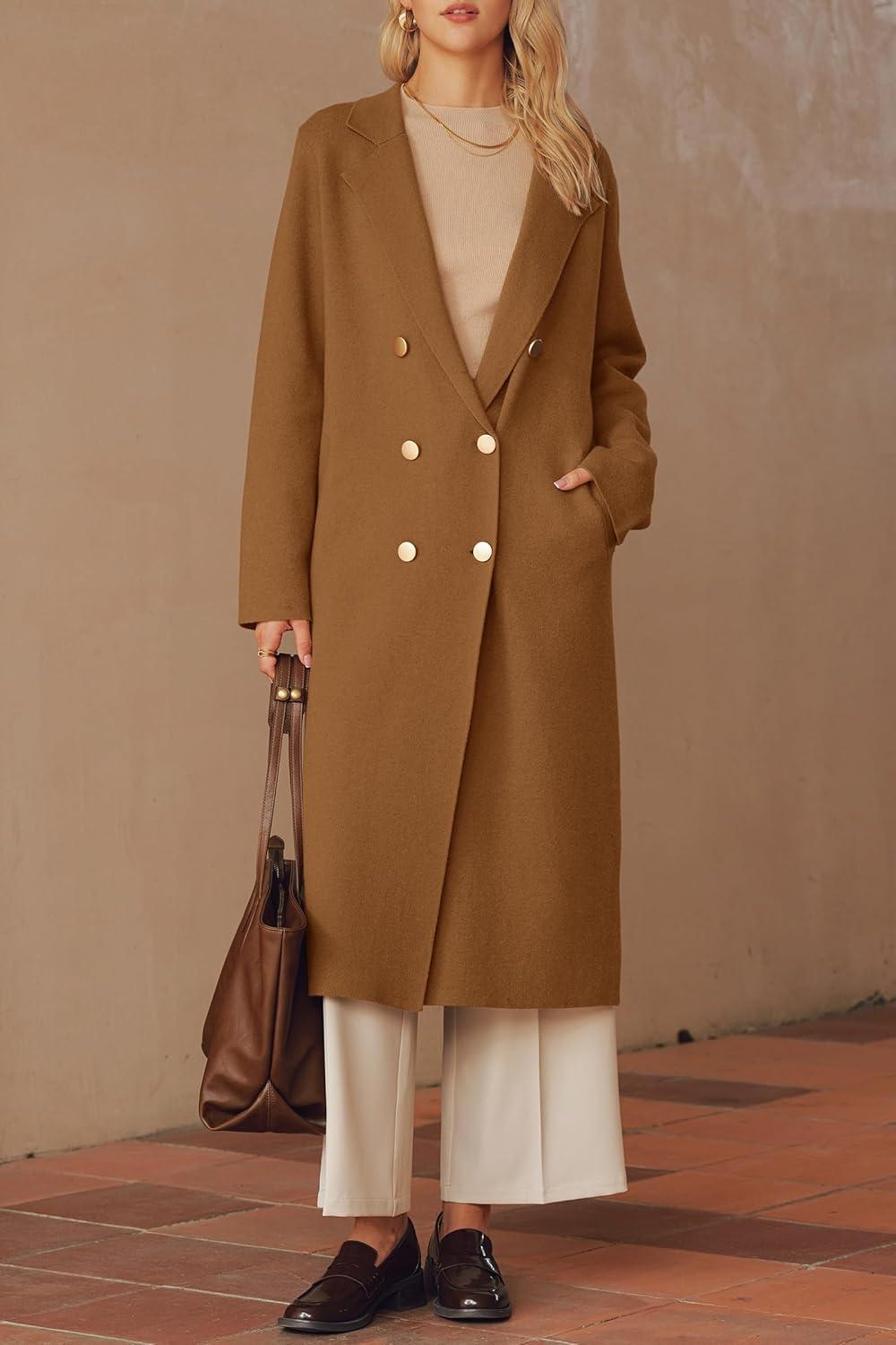 Arach&Cloz Women’s Wool Blend Double Breasted Winter Outfits Long Cardigan Sweater Coat 2025(Camel)