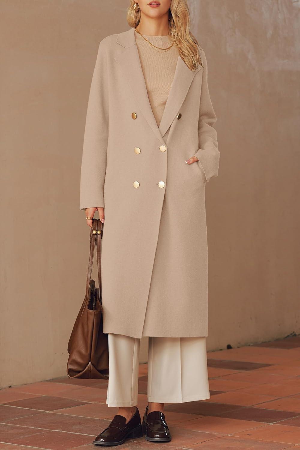 Arach&Cloz Women’s Wool Blend Double Breasted Winter Outfits Long Cardigan Sweater Coat 2025(Khaki Apricot)