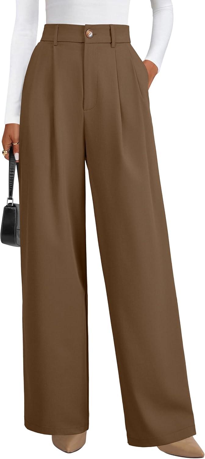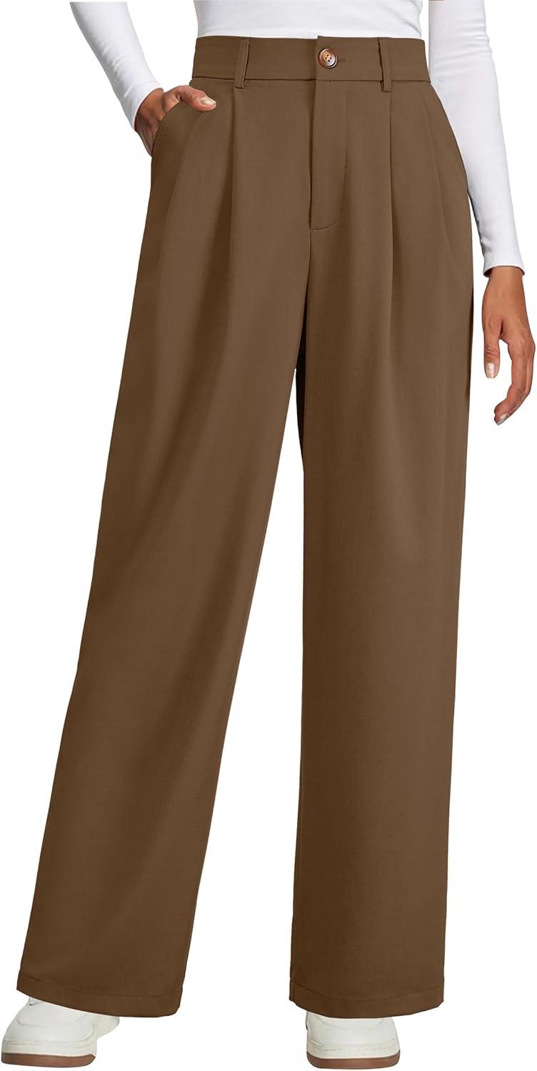 Arach&Cloz Women’s Wool Blend Elastic Waist Straight Leg Business Casual Pants 2025(Brown)