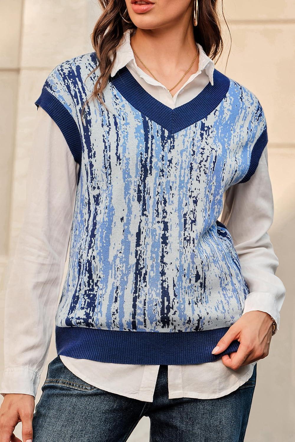 Arach&Cloz Women’s Wool Blend Fall Printed Cute Trendy Sweater Vests 2025(Blue)
