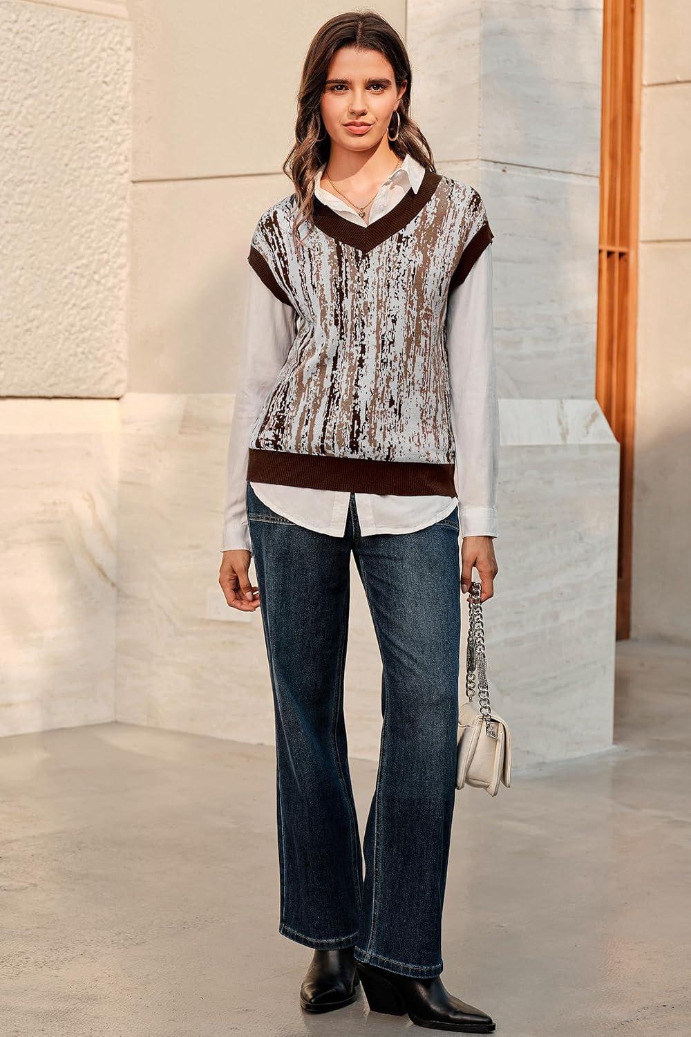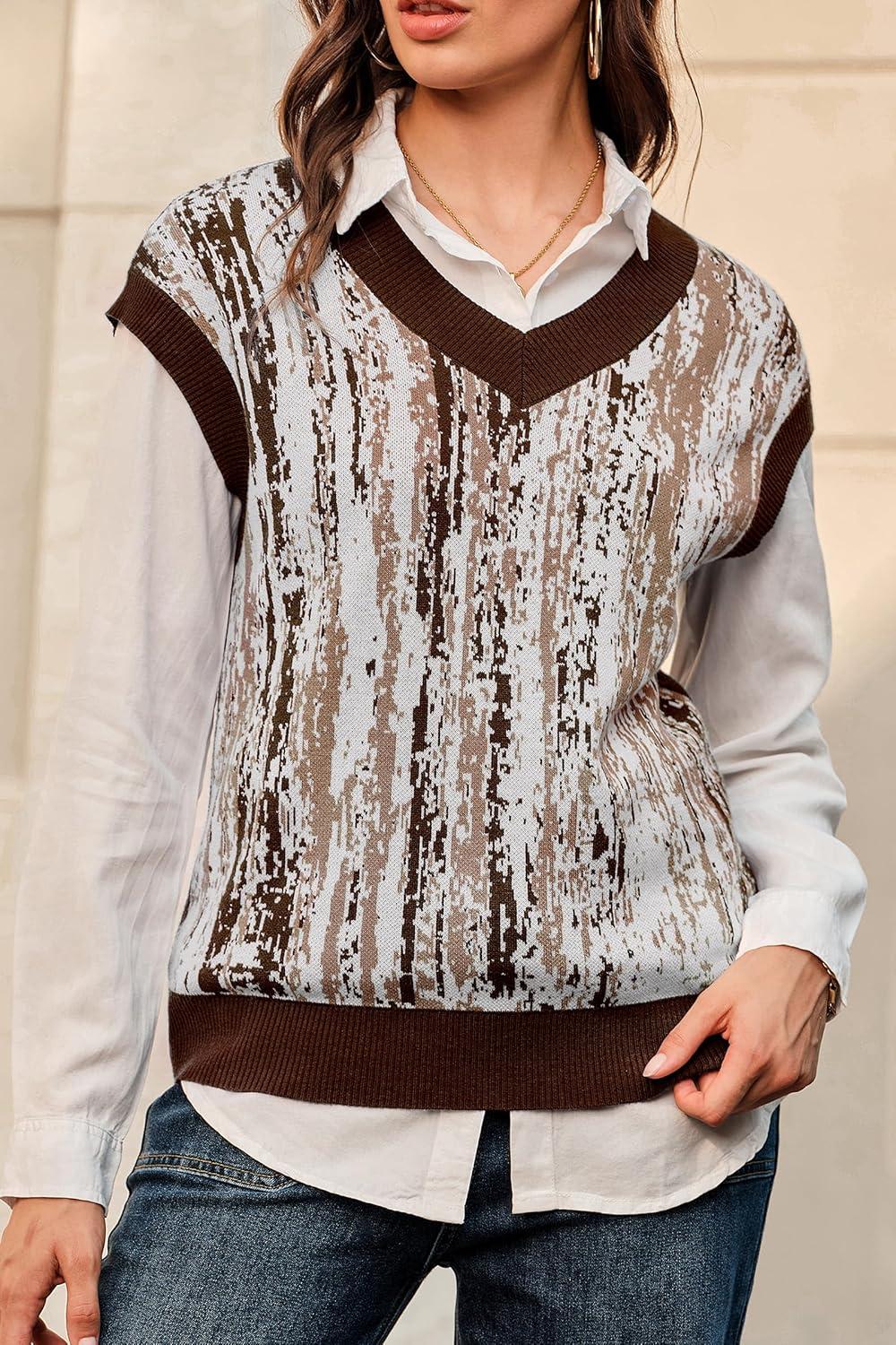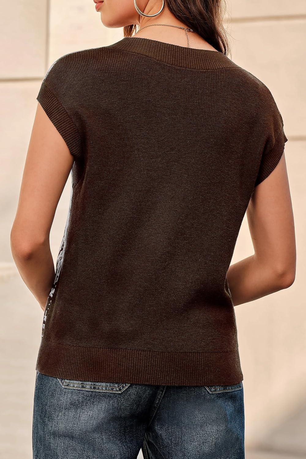 Arach&Cloz Women’s Wool Blend Fall Printed Cute Trendy Sweater Vests 2025(Brown)