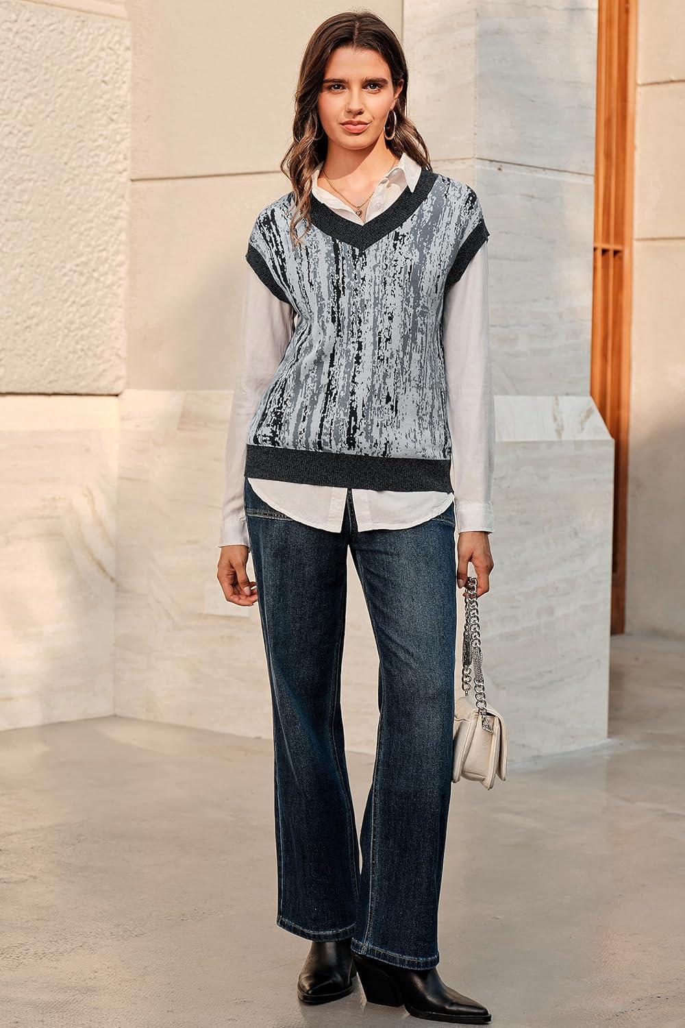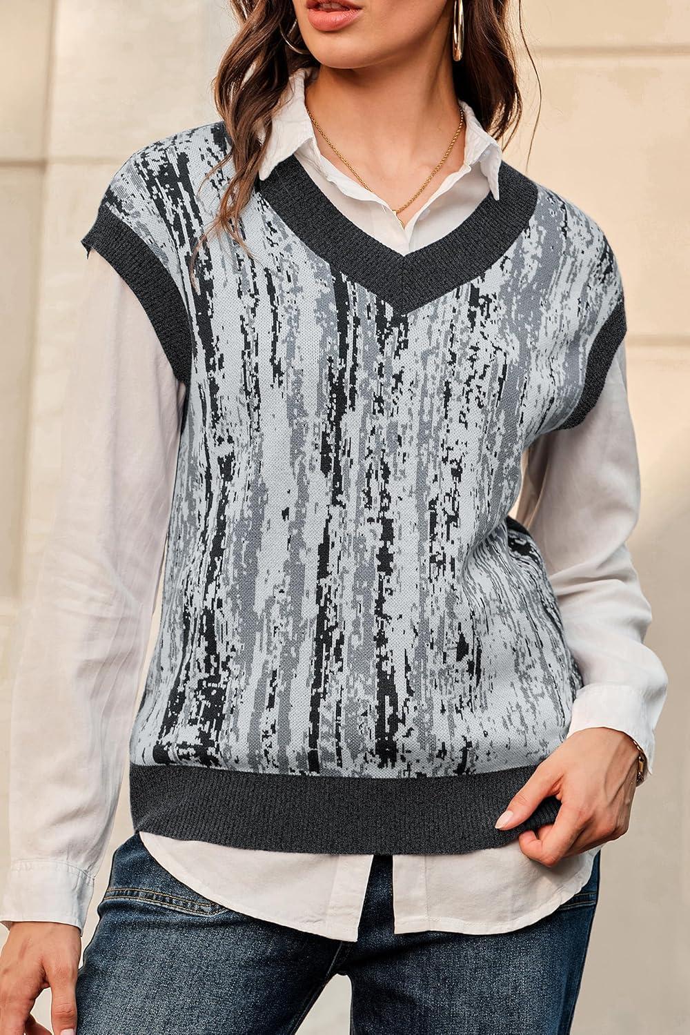 Arach&Cloz Women’s Wool Blend Fall Printed Cute Trendy Sweater Vests 2025(Grey)