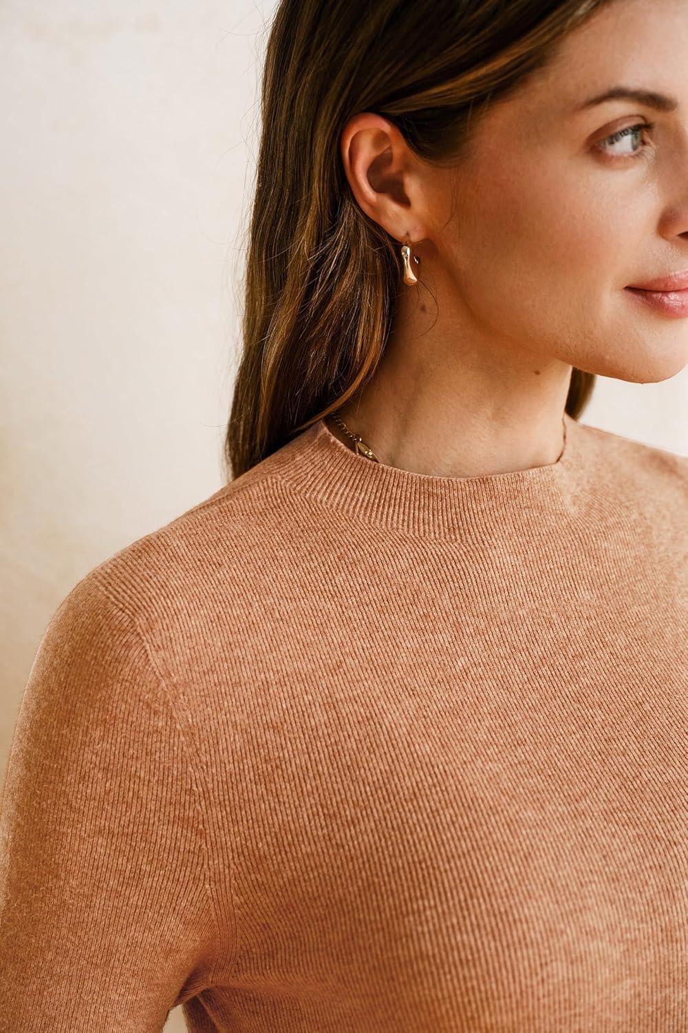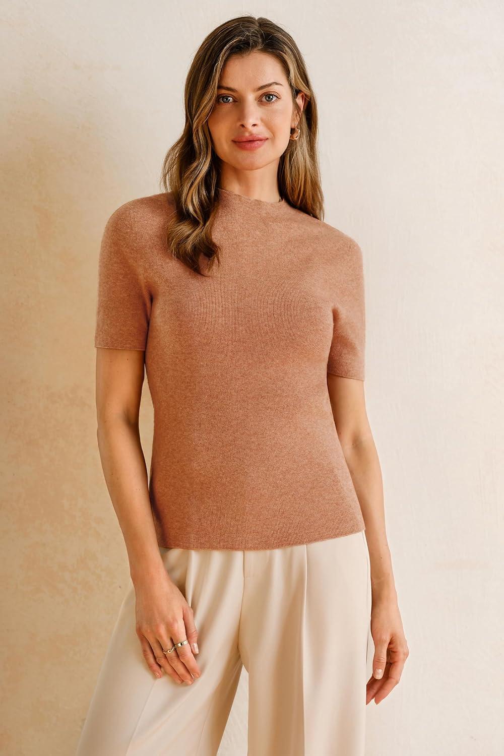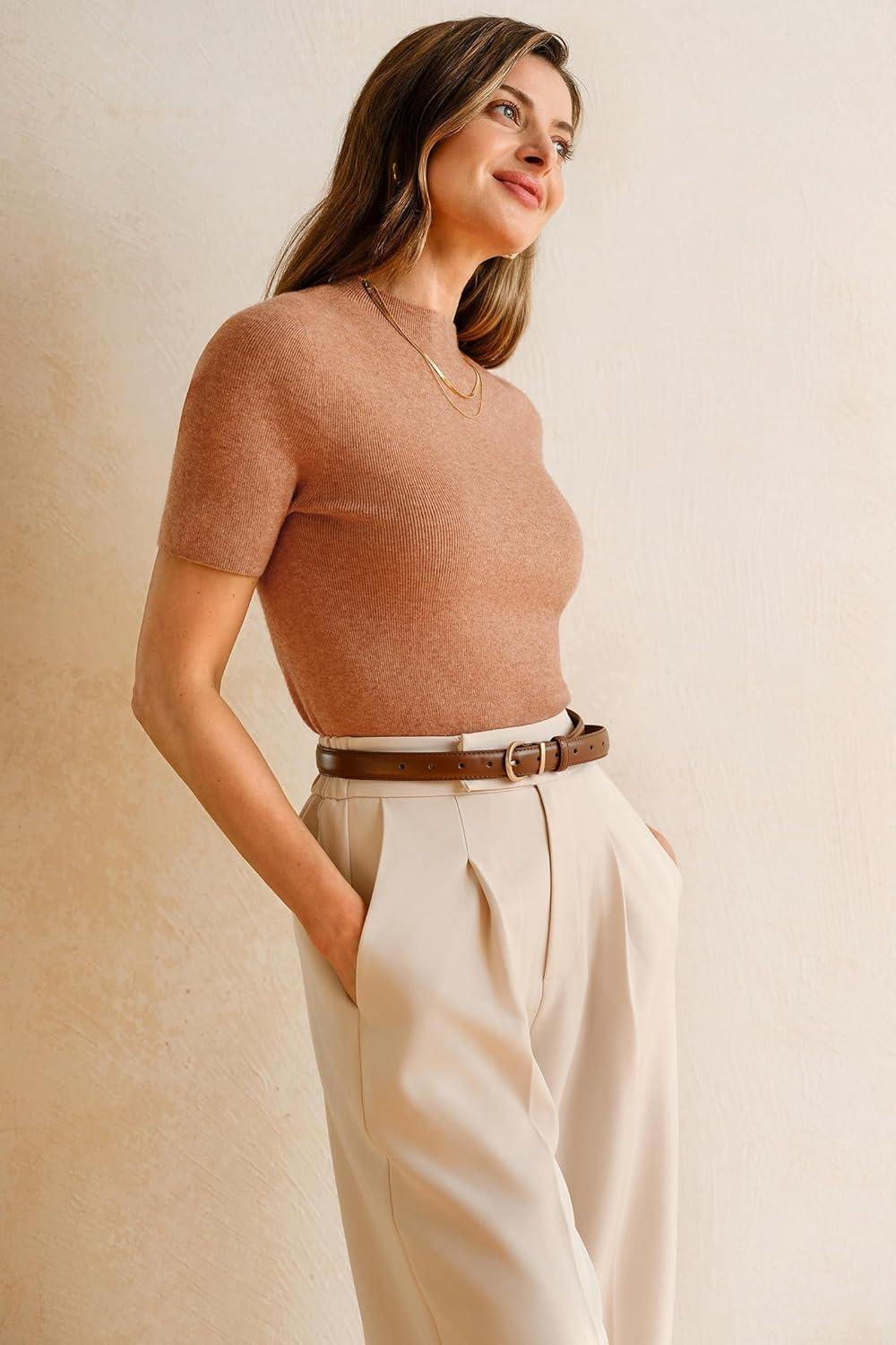 Arach&Cloz Women’s Wool Blend Fall Seamless Rip Resistant Tops Opaque Business Casual Shirts(Camel)
