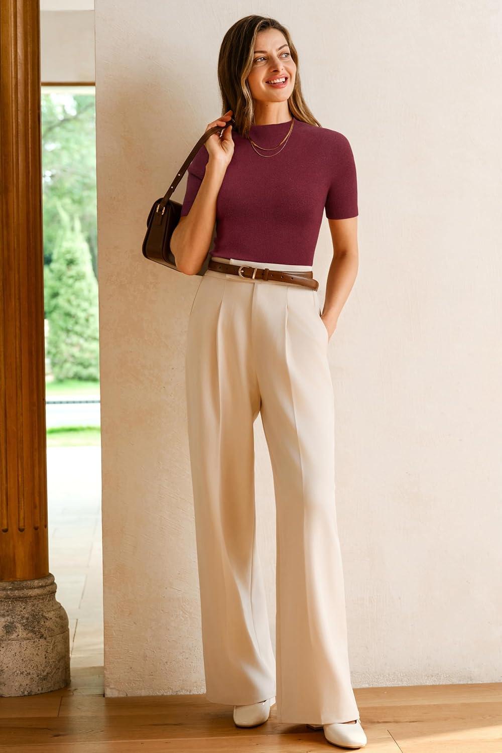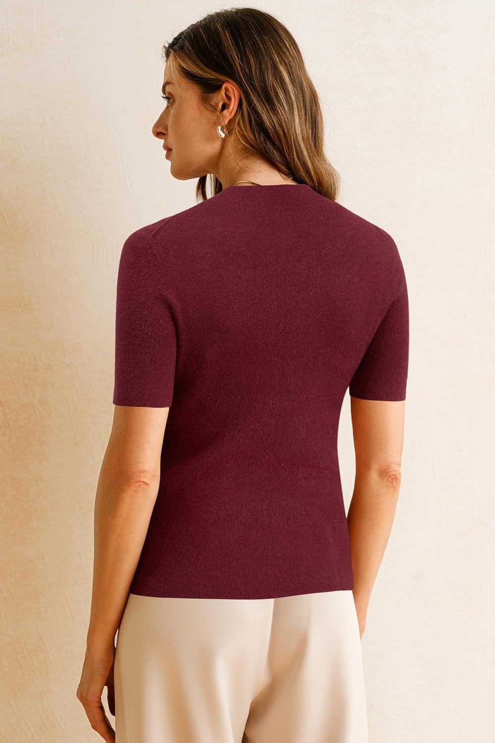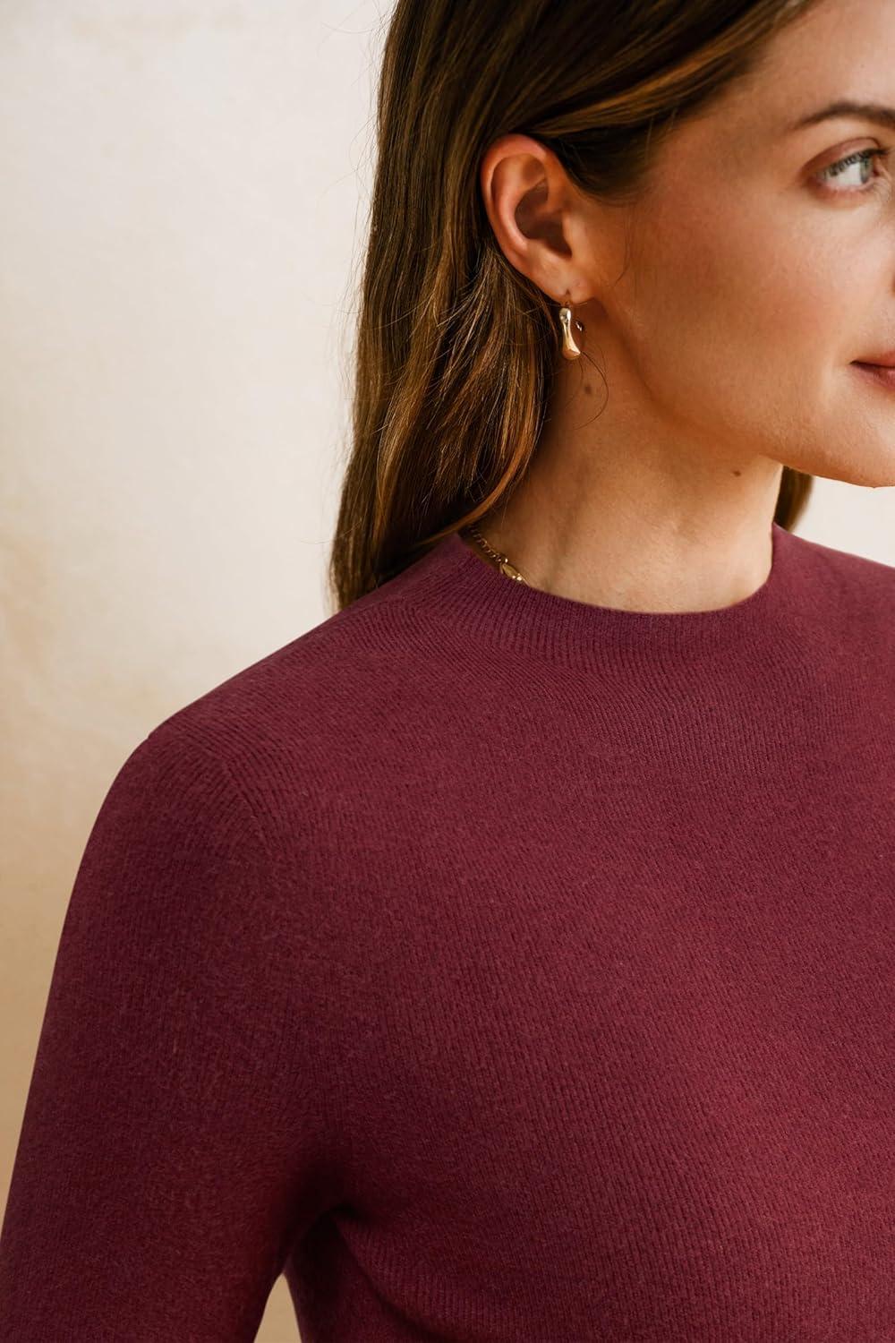 Arach&Cloz Women’s Wool Blend Fall Seamless Rip Resistant Tops Opaque Business Casual Shirts(Dark Red)