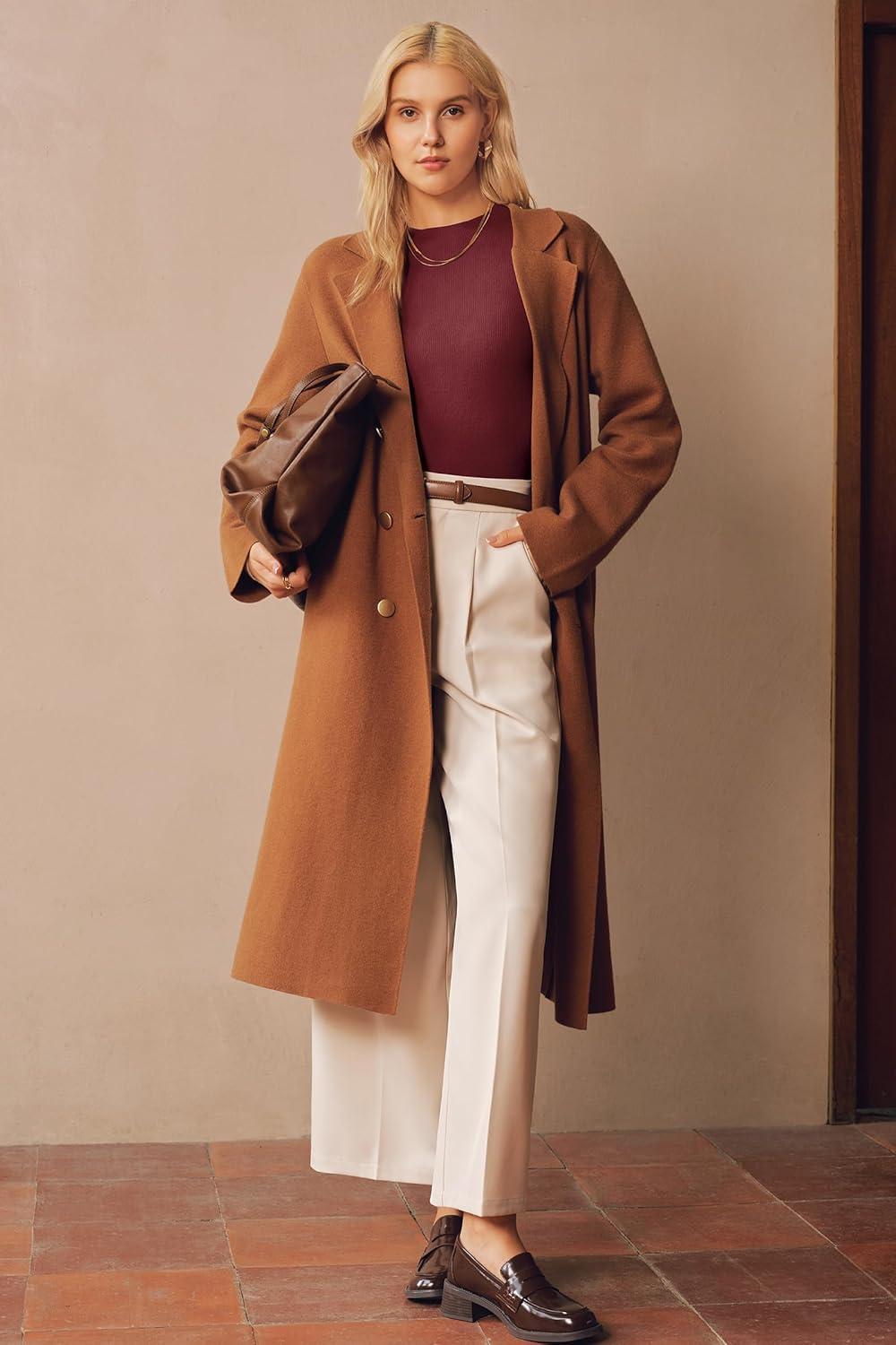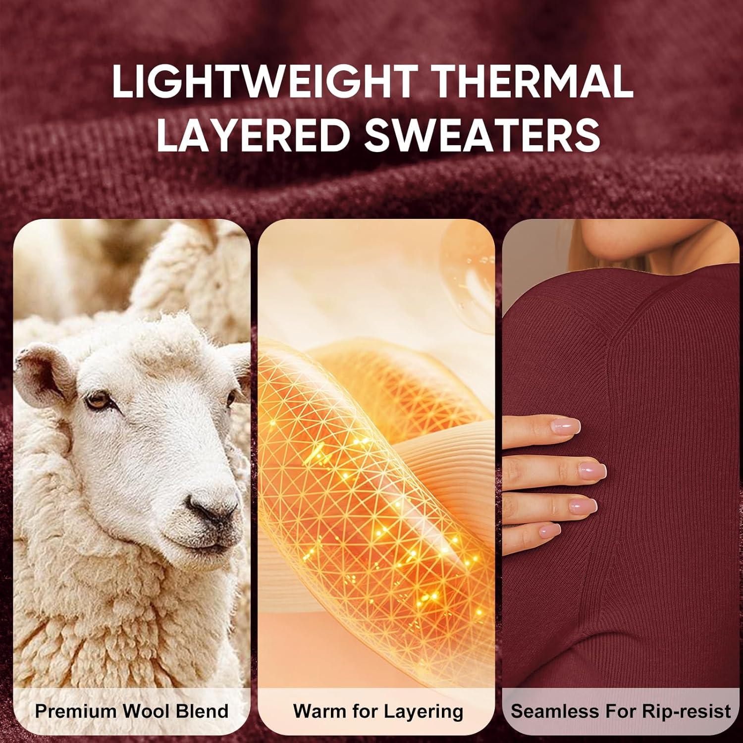 Arach&Cloz Women’s Wool Blend Fall Seamless Rip Resistant Warm Layered Tops Business Casual Sweaters(A-dark Red)
