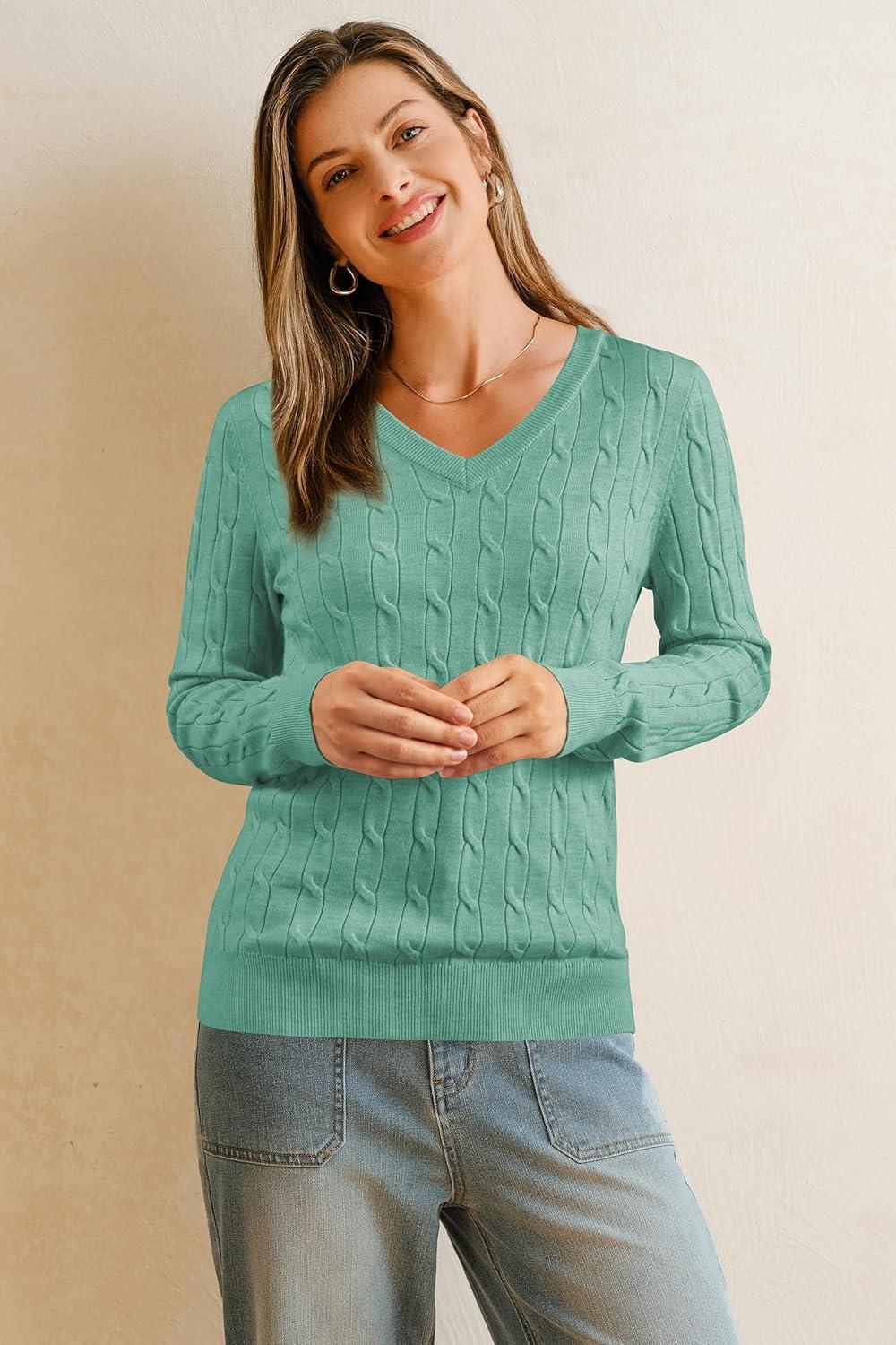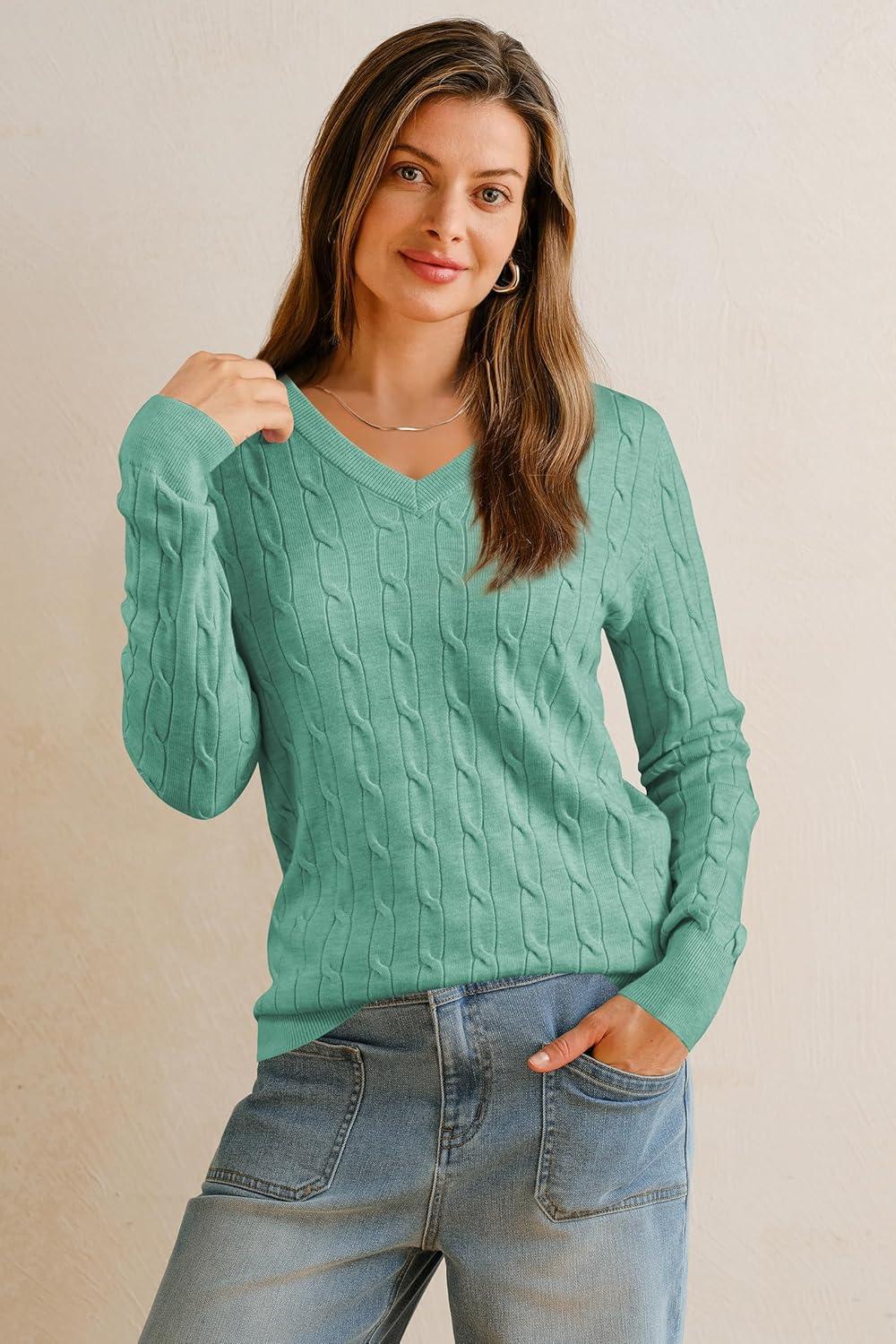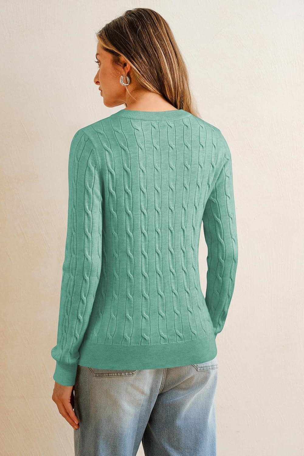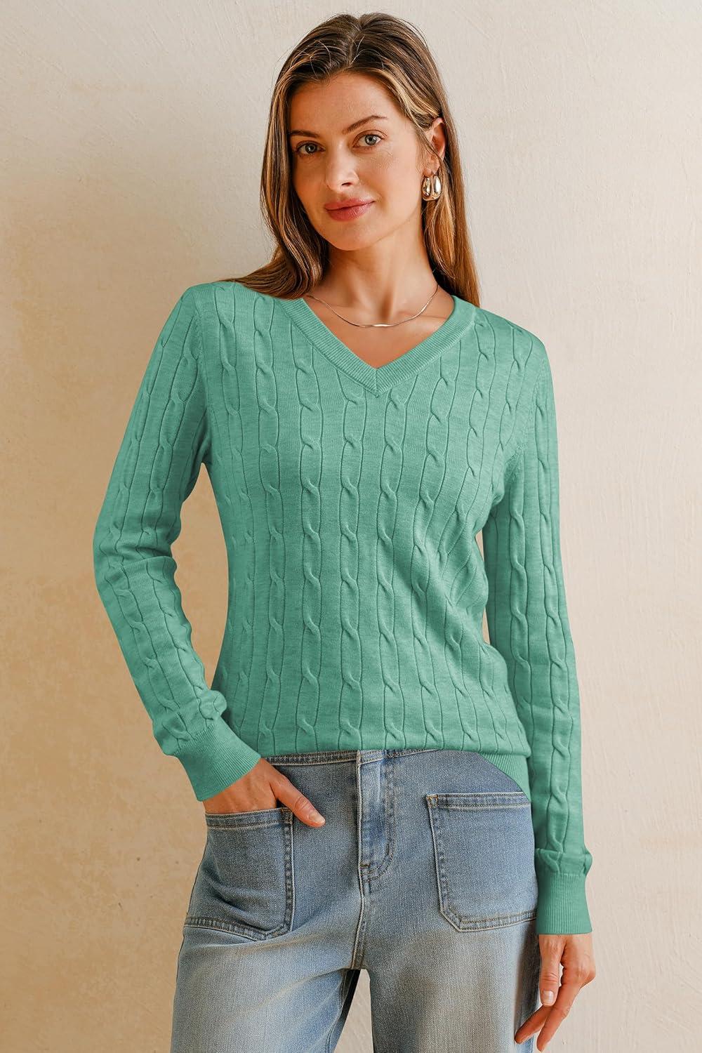 Arach&Cloz Women’s Wool Blend Fall Sweaters Business Casual Outfits(Cable-green)