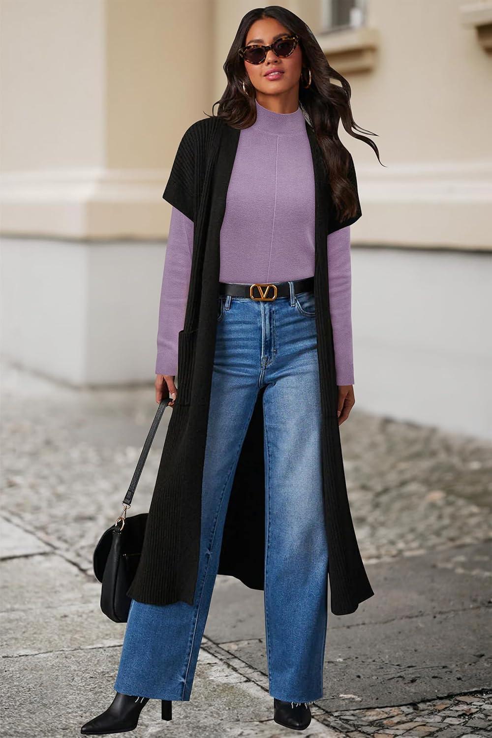 Arach&Cloz Women’s Wool Blend Fall Sweaters Mock Neck Business Casual Outfits(A-purple)