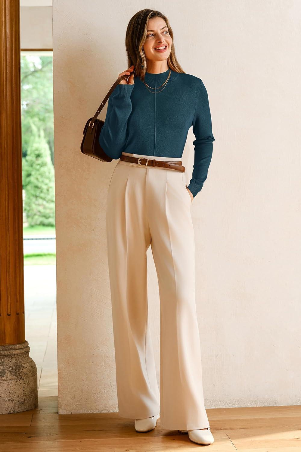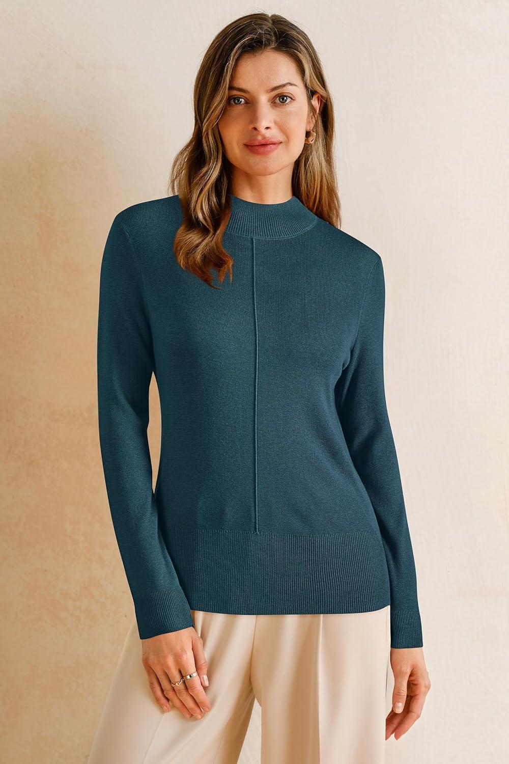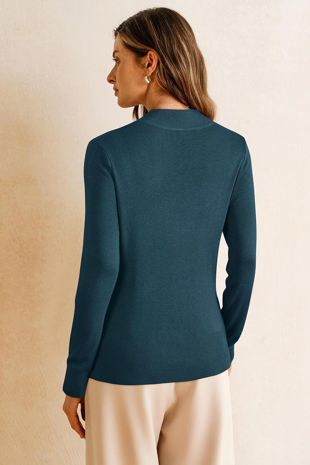 Arach&Cloz Women’s Wool Blend Fall Sweaters Mock Neck Business Casual Outfits(Dark Green)
