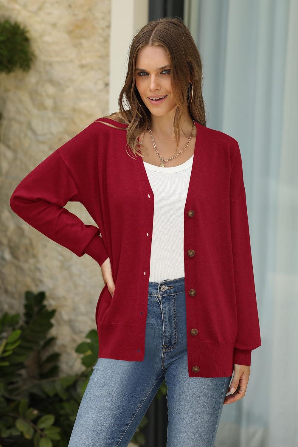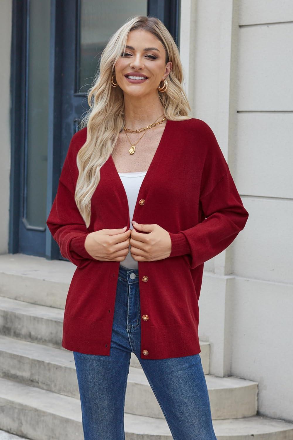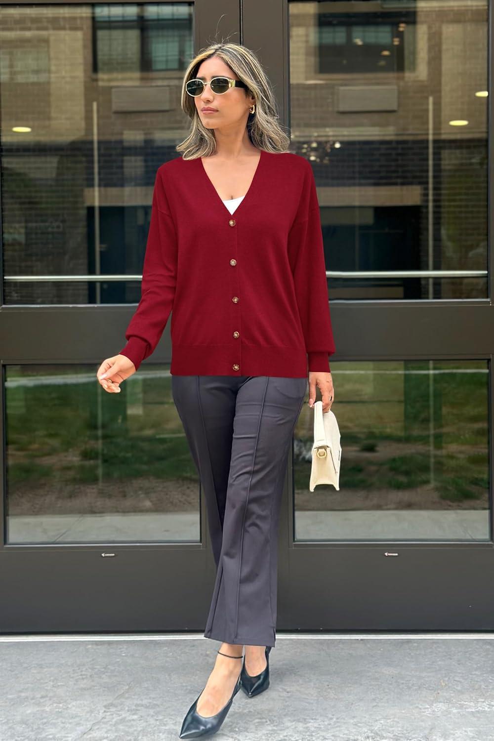 Arach&Cloz Women’s Wool Blend Lightweight Fall Business Casual Cardigan Sweaters(Berry Red)