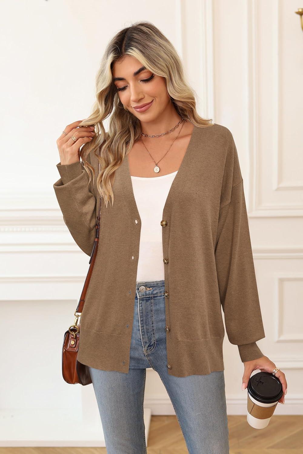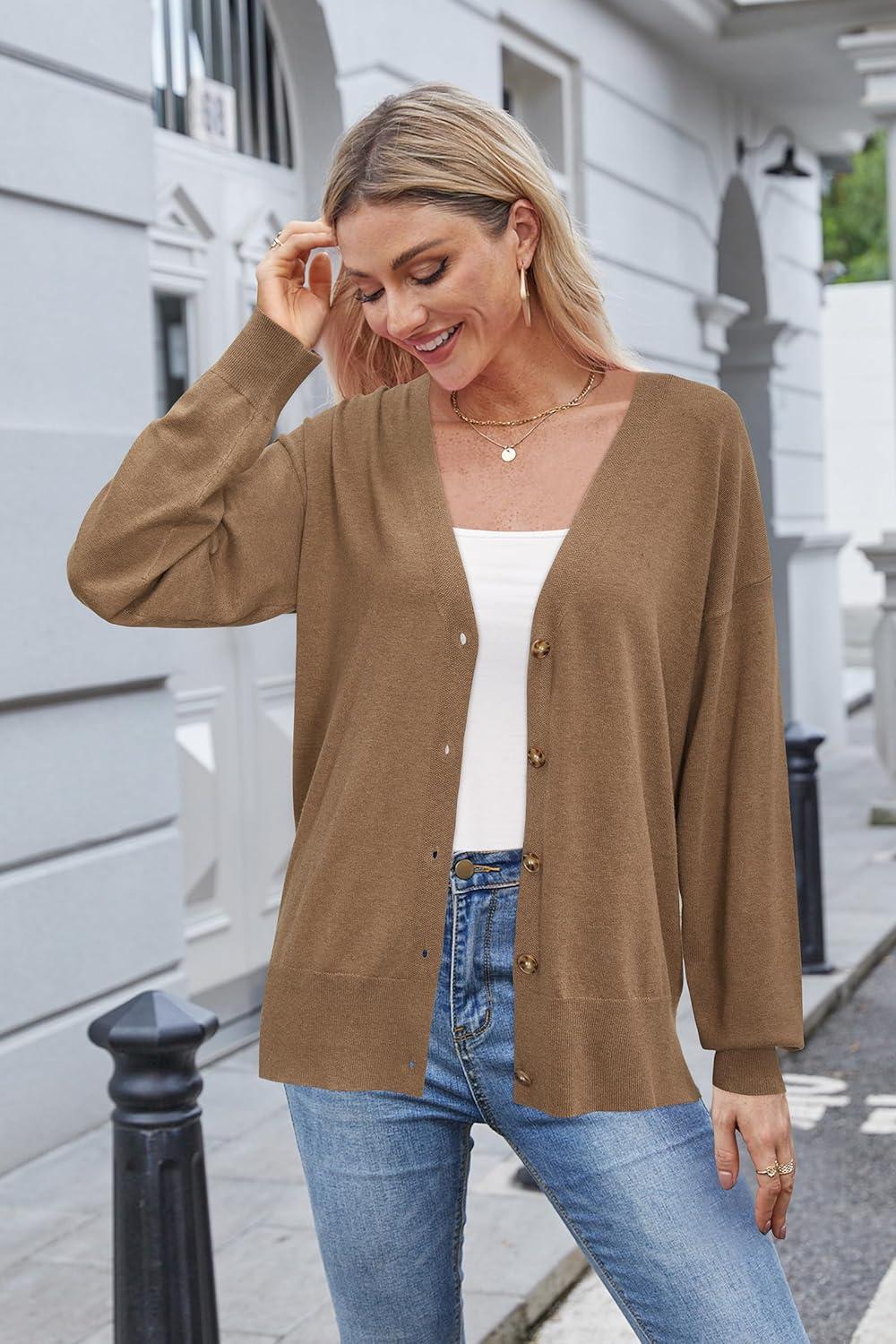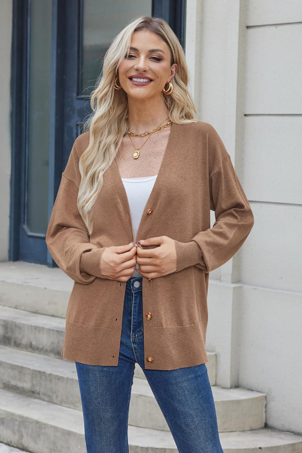 Arach&Cloz Women’s Wool Blend Lightweight Fall Business Casual Cardigan Sweaters(Camel)