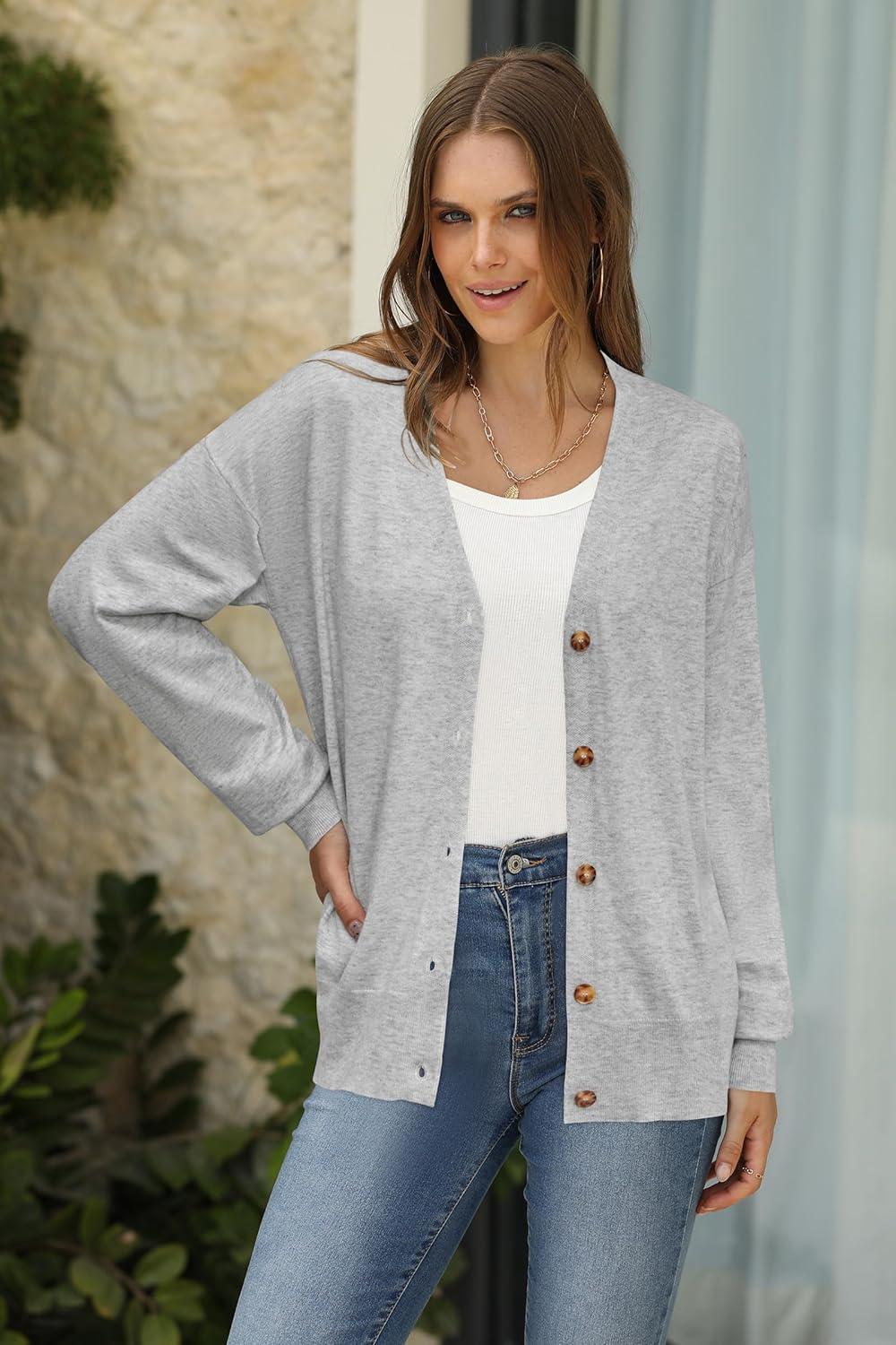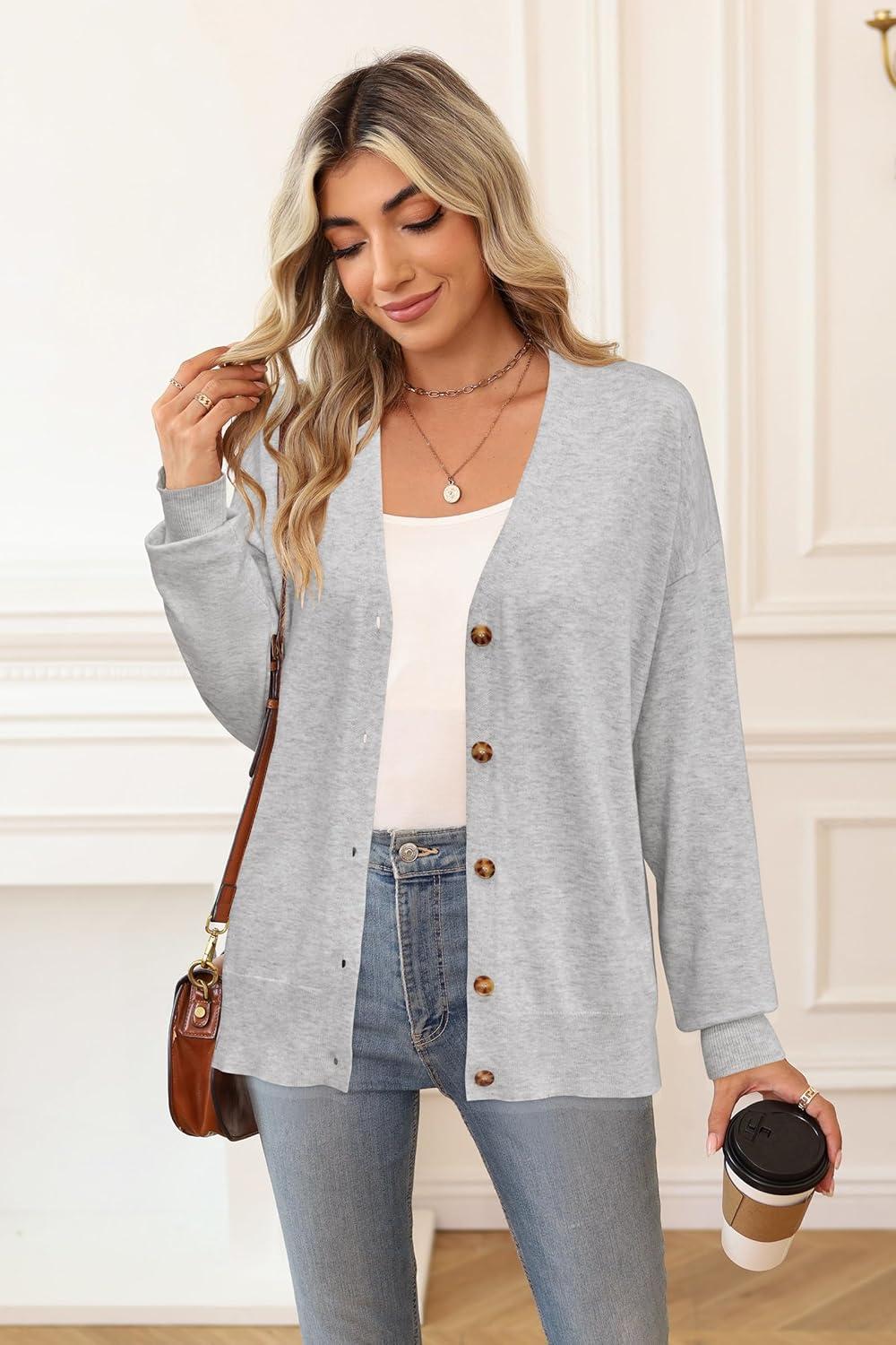 Arach&Cloz Women’s Wool Blend Lightweight Fall Business Casual Cardigan Sweaters(Light Gray)