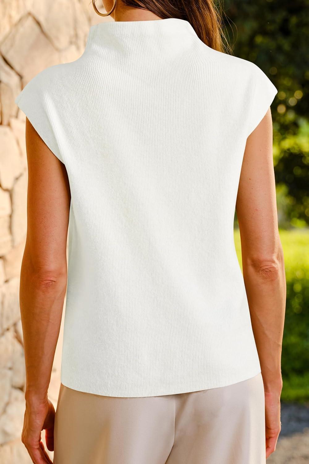 Arach&Cloz Women’s Wool Blend Mock Neck Business Casual Sweater Vest 2025 Fall(Off-white)