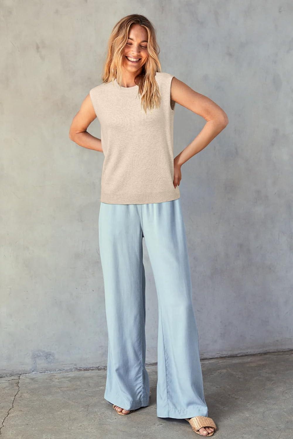 Arach&Cloz Women’s Wool Blend Mock Neck Sweaters Vest Business Casual Trendy Tops Fall Outfits 2025(Apricot-5046)