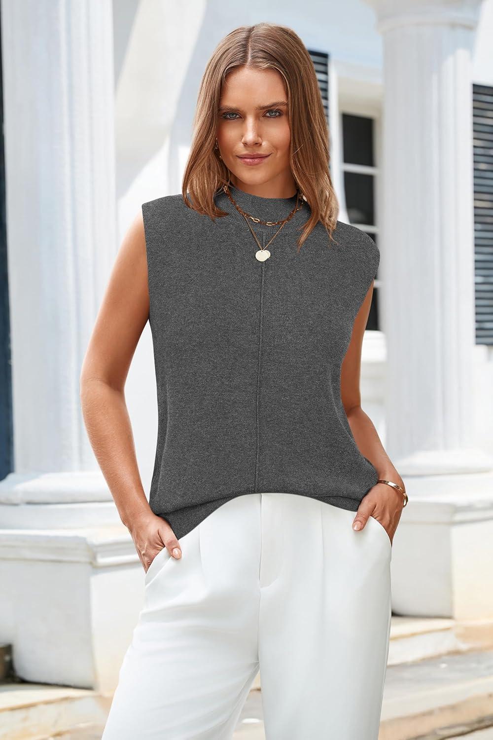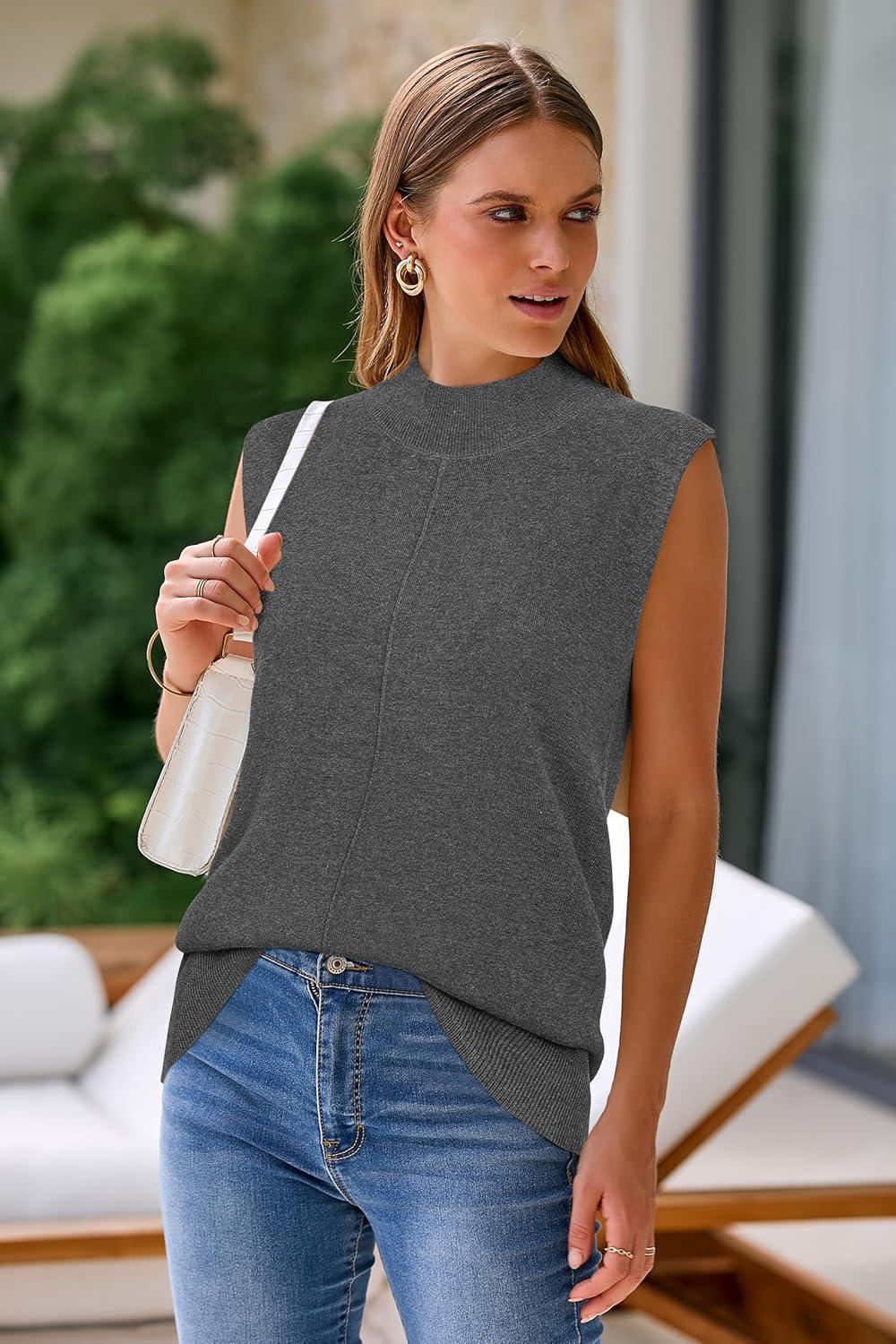 Arach&Cloz Women’s Wool Blend Mock Neck Sweaters Vest Business Casual Trendy Tops Fall Outfits 2025(Dark Grey)