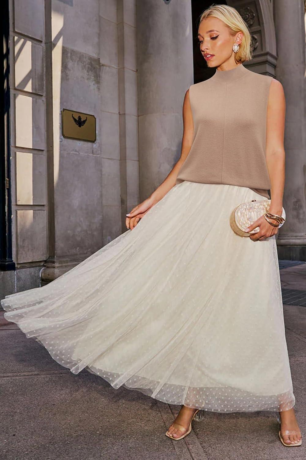 Arach&Cloz Women’s Wool Blend Mock Neck Sweaters Vest Business Casual Trendy Tops Fall Outfits 2025(Khaki)
