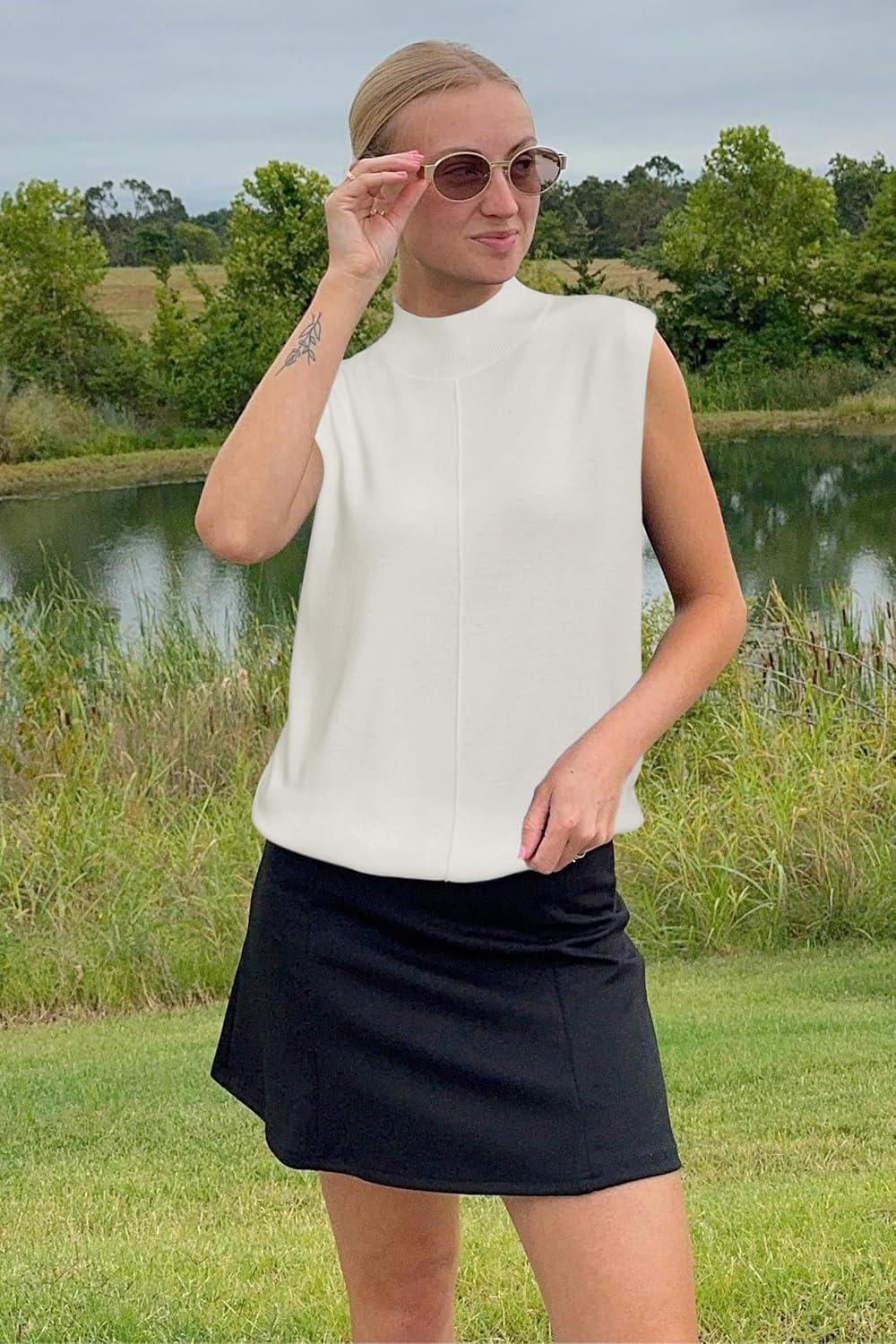 Arach&Cloz Women’s Wool Blend Mock Neck Sweaters Vest Business Casual Trendy Tops Fall Outfits 2025(Off-white)