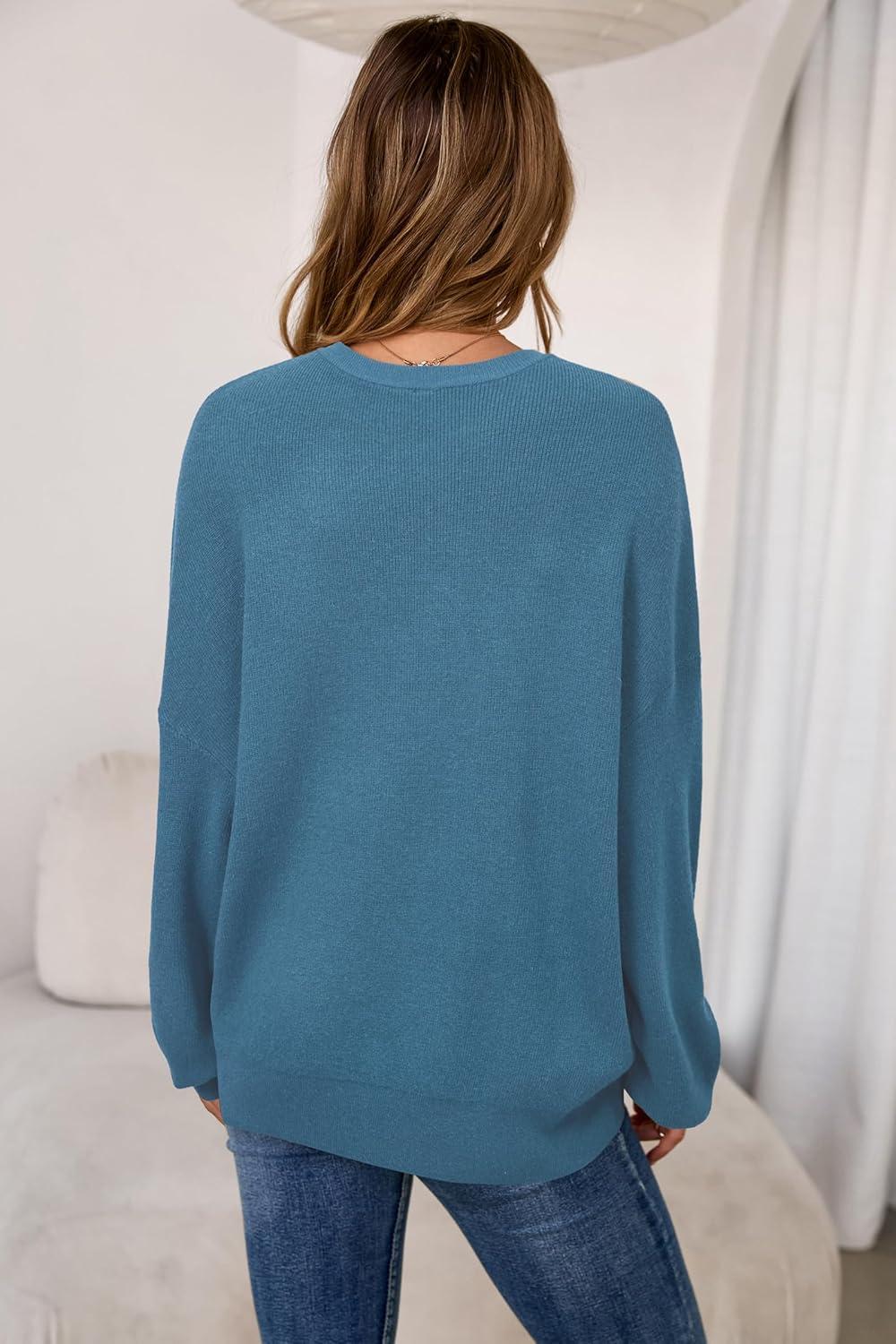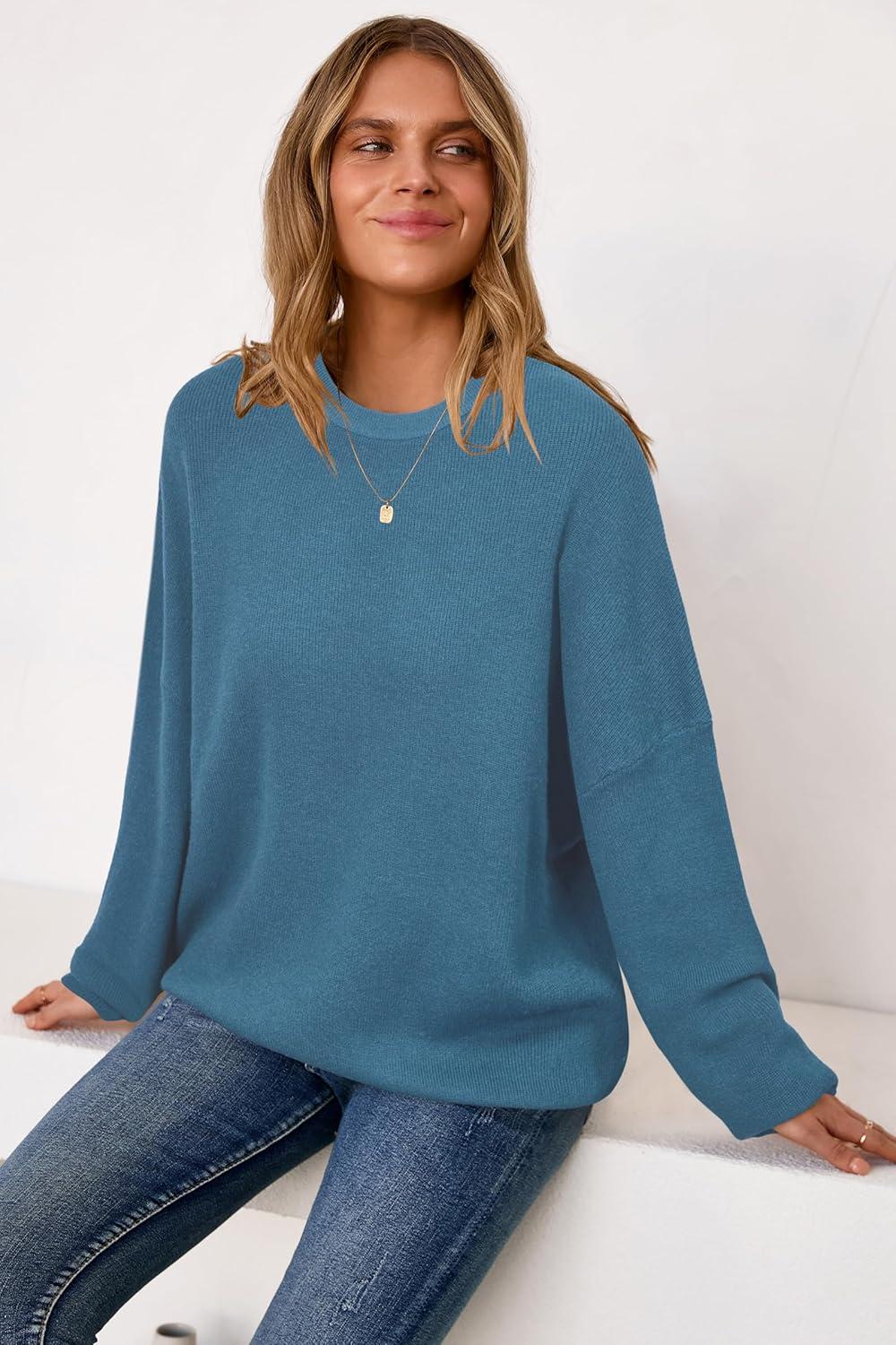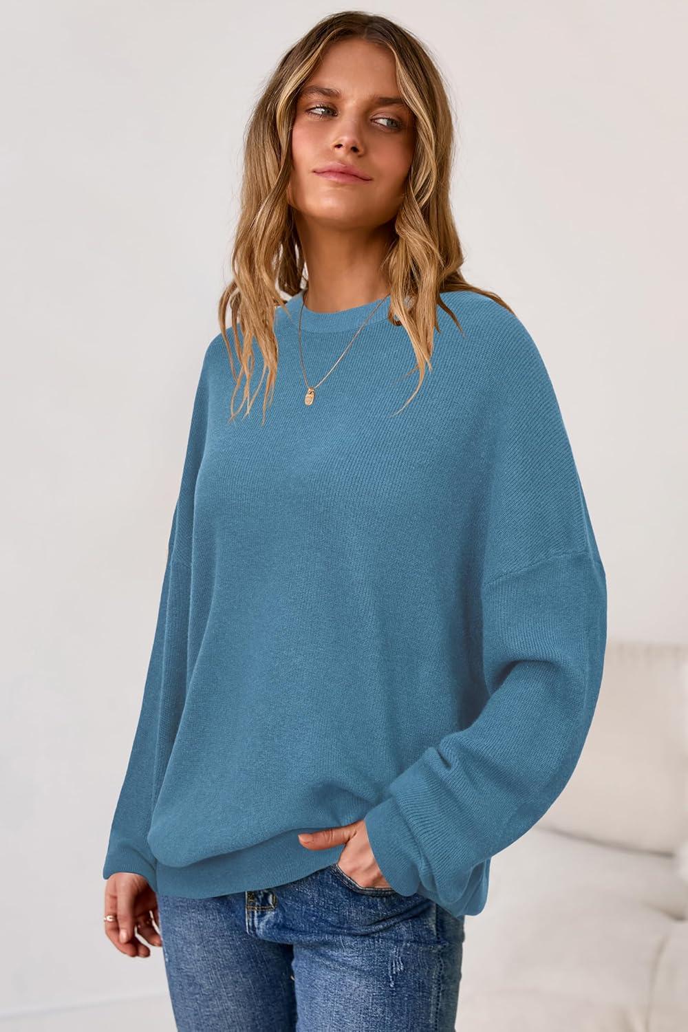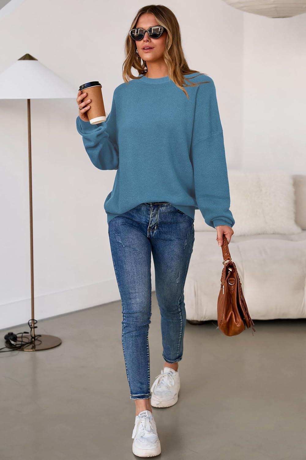 Arach&Cloz Women’s Wool Blend Oversized Sweaters Crewneck Casual Fall Outfits Fashion Tops(Blue)