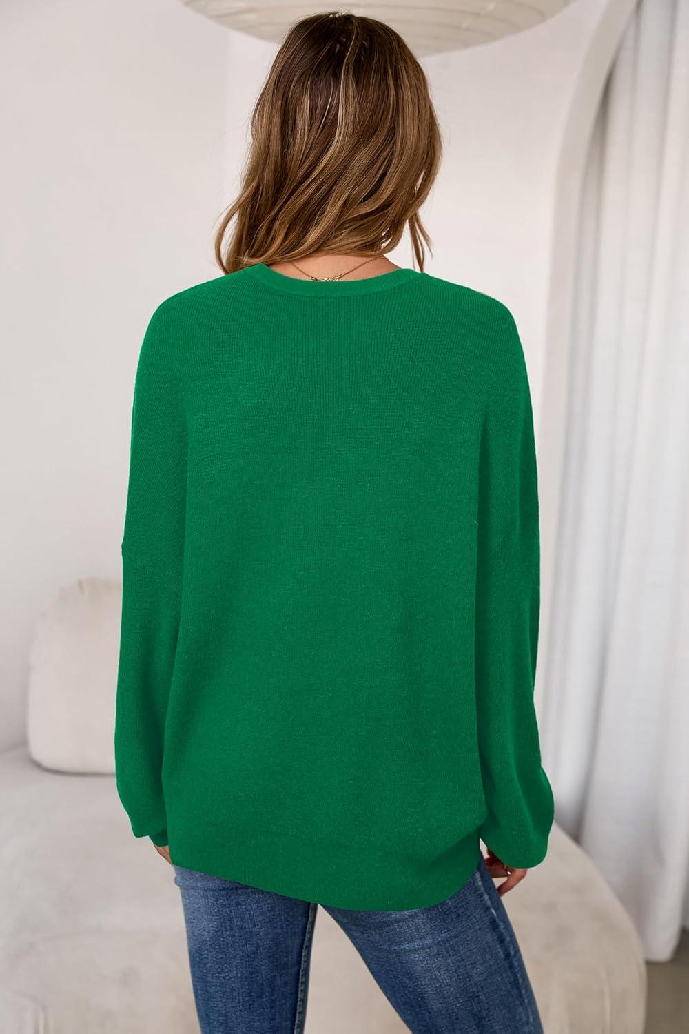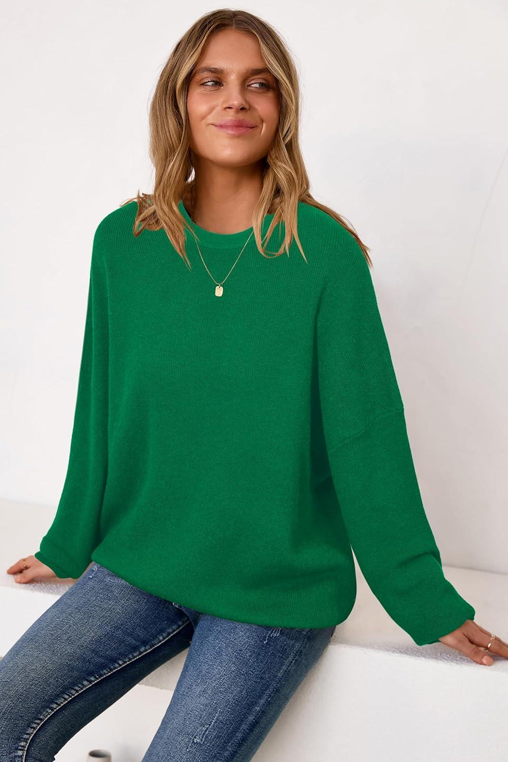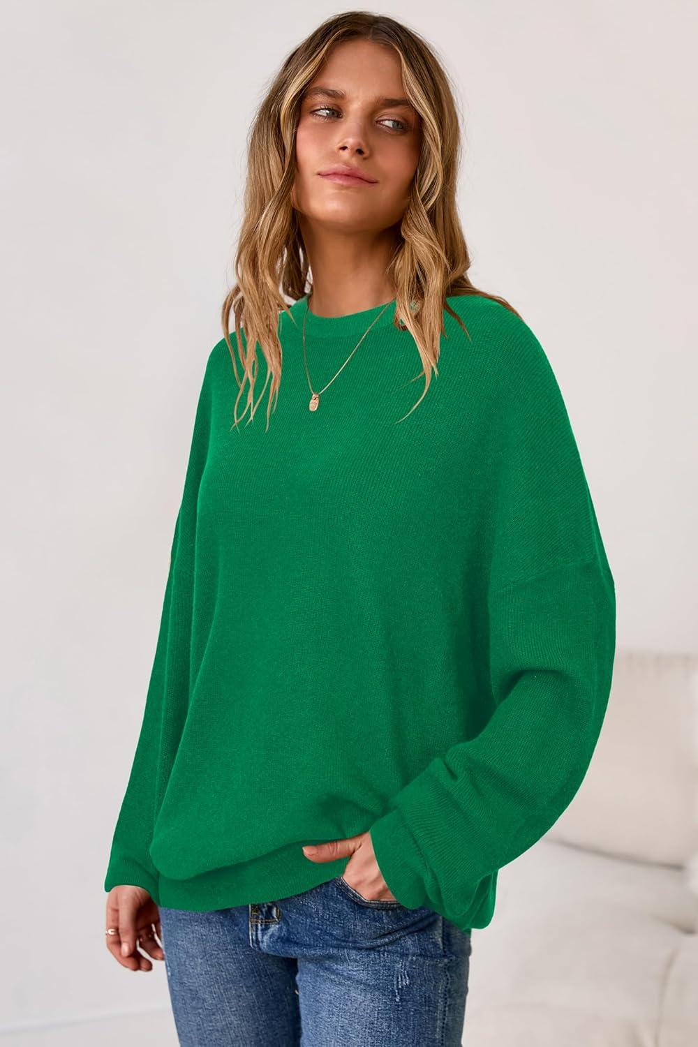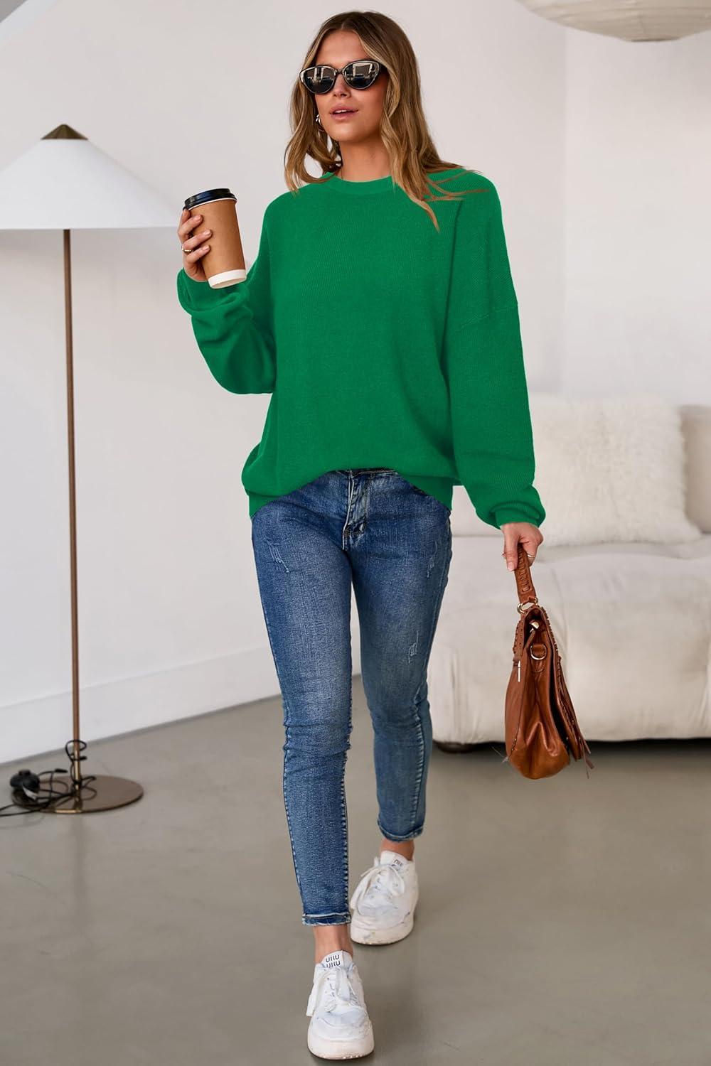 Arach&Cloz Women’s Wool Blend Oversized Sweaters Crewneck Casual Fall Outfits Fashion Tops(Green)