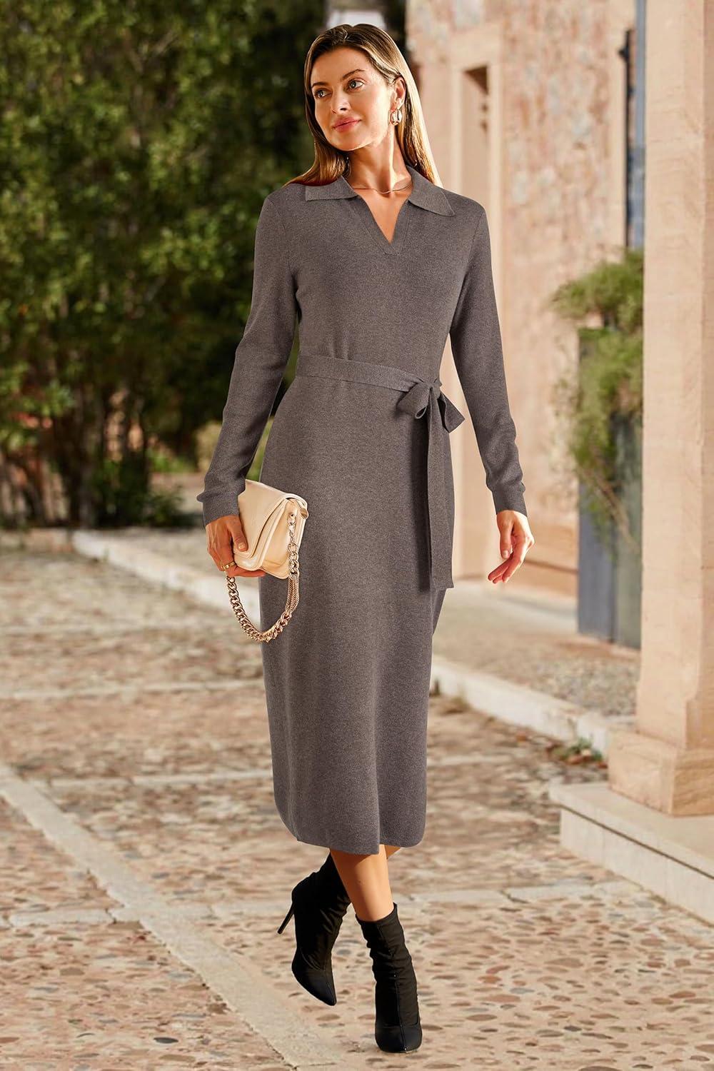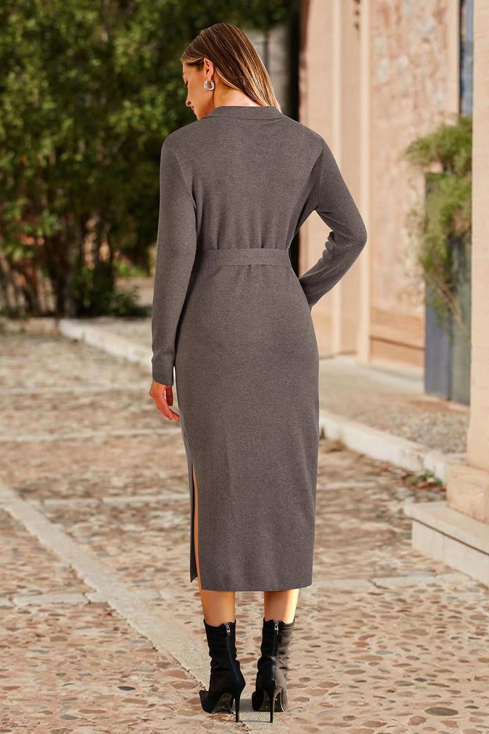 Arach&Cloz Women’s Wool Blend Side Slit Polo Sweater Dresses 2025 Fall Business Casual Outfits(Coffee)