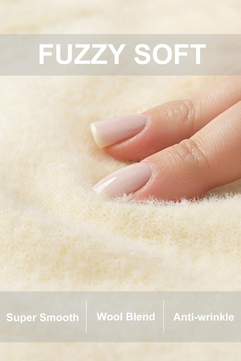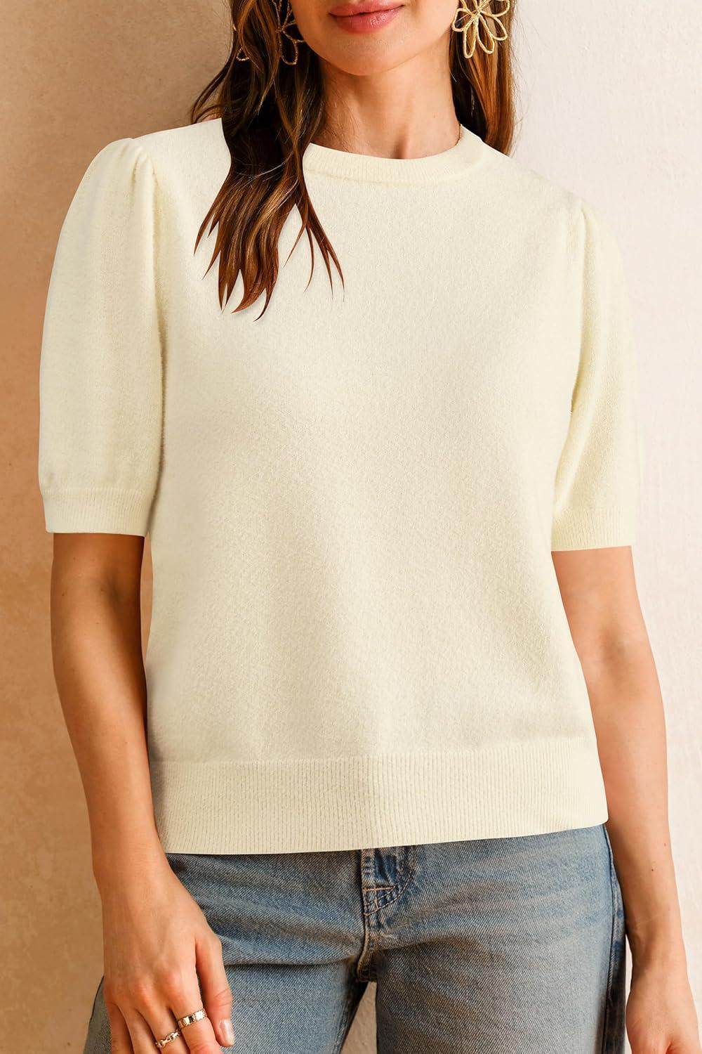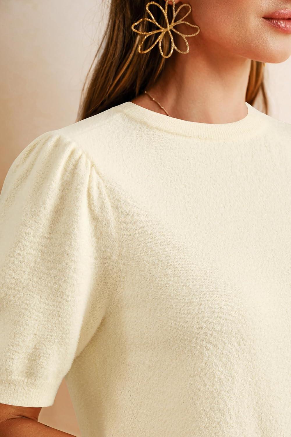 Arach&Cloz Women’s Wool Blend Soft Fuzzy Puff Sleeve Cute Casual Fall Sweaters 2025(Cream)