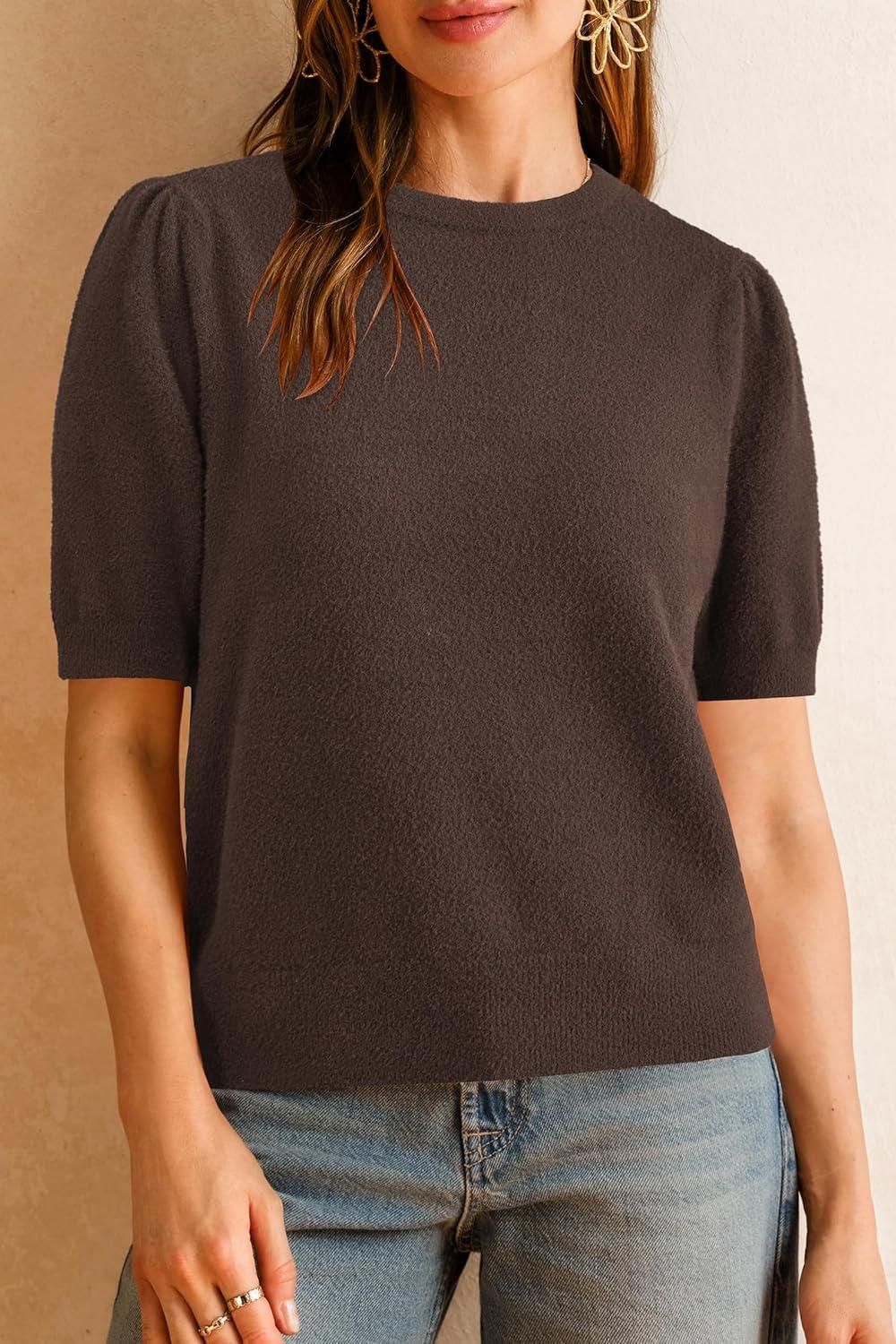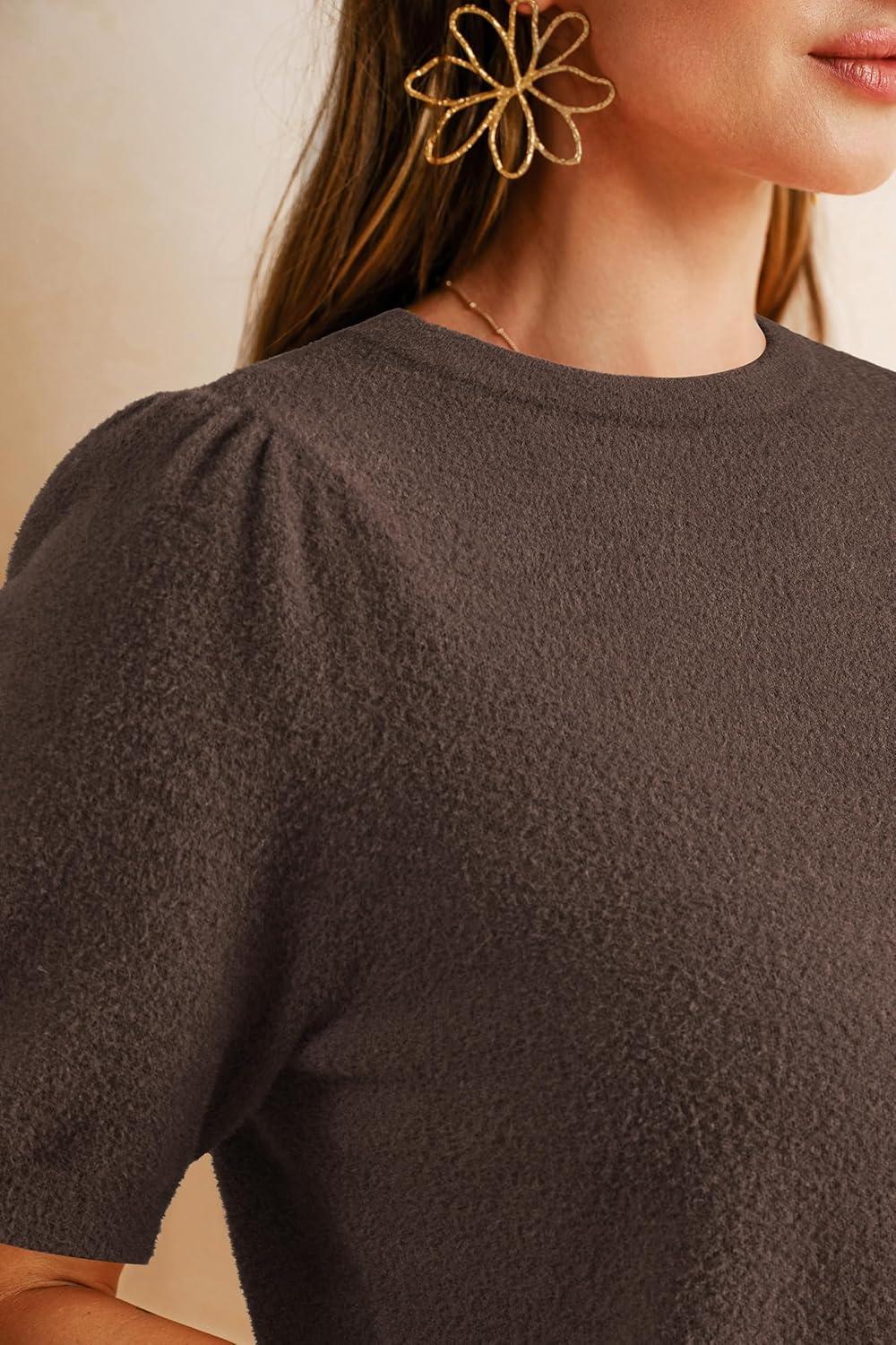 Arach&Cloz Women’s Wool Blend Soft Fuzzy Puff Sleeve Cute Casual Fall Sweaters 2025(Dark Brown)