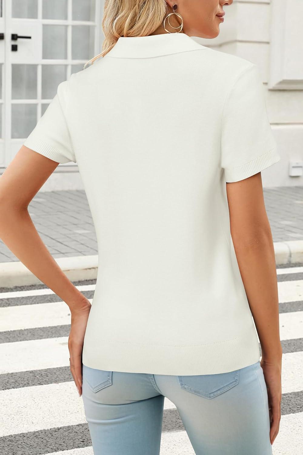Arach&Cloz Women’s Wool Blend Summer Fall Tops Business Casual Polo Shirts 2025(Off-white)