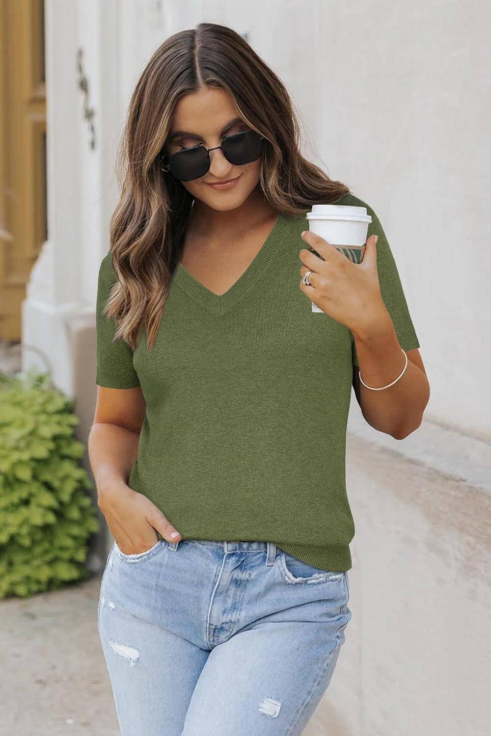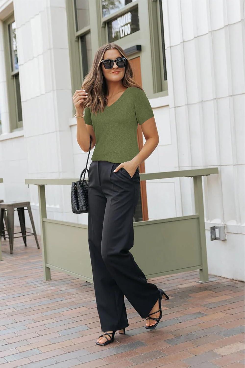 Arach&Cloz Women’s Wool Blend Summer Fall Tops Lightweight Business Casual Blouses(Army Green)