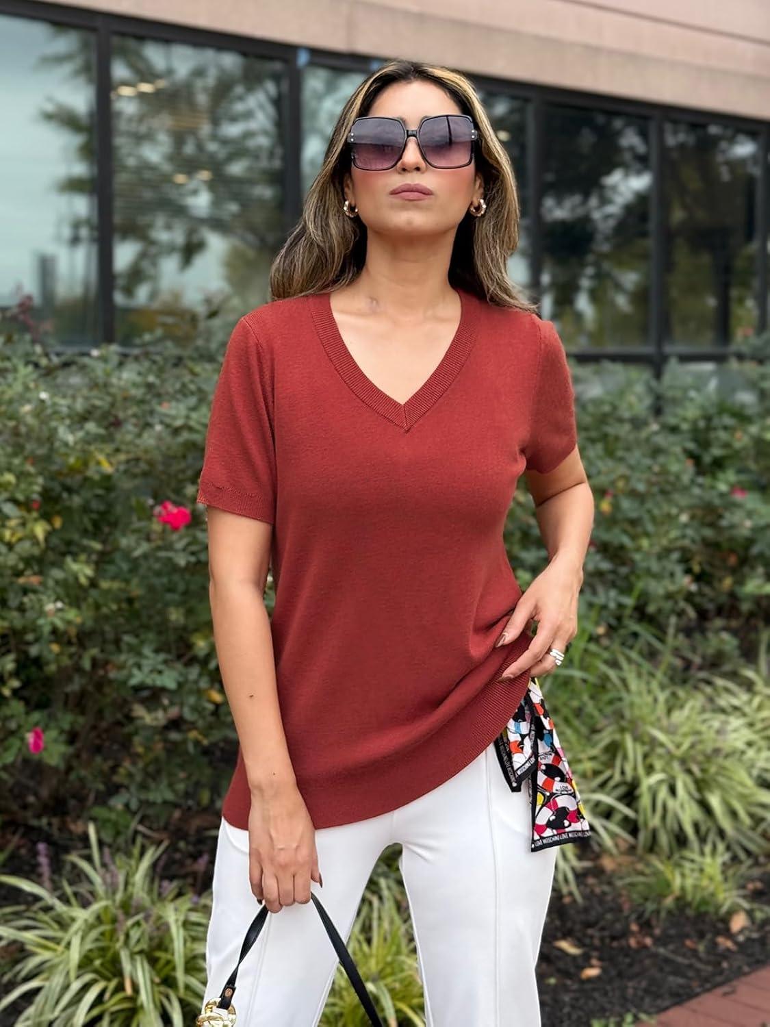 Arach&Cloz Women’s Wool Blend Summer Fall Tops Lightweight Business Casual Blouses(Brick Red)