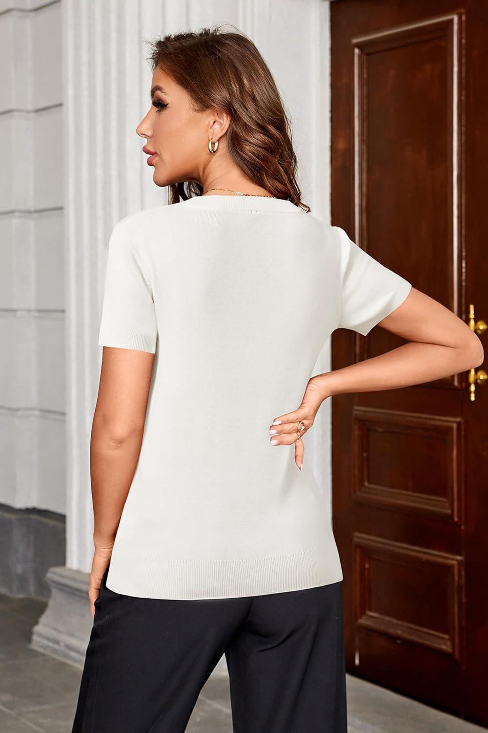 Arach&Cloz Women’s Wool Blend Summer Fall Tops Lightweight Business Casual Blouses(Off-white)
