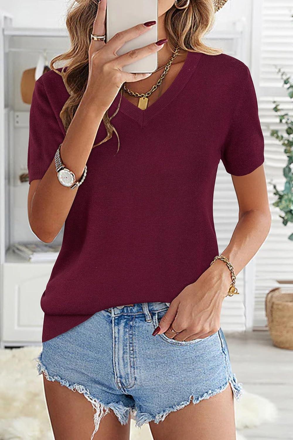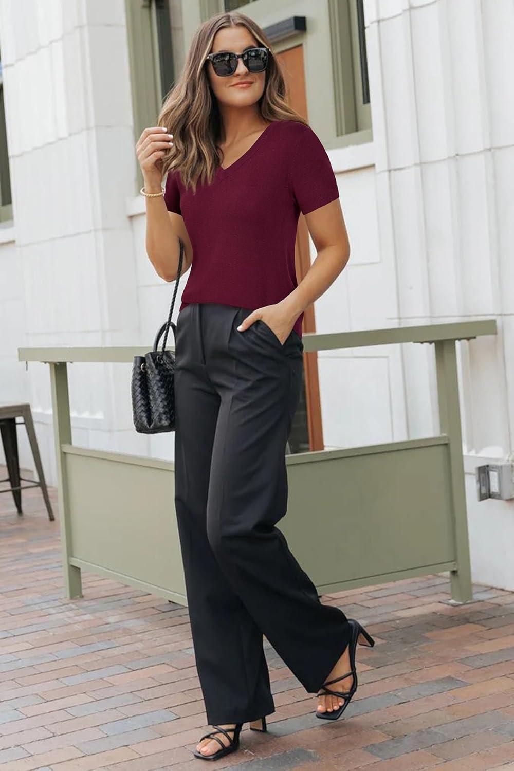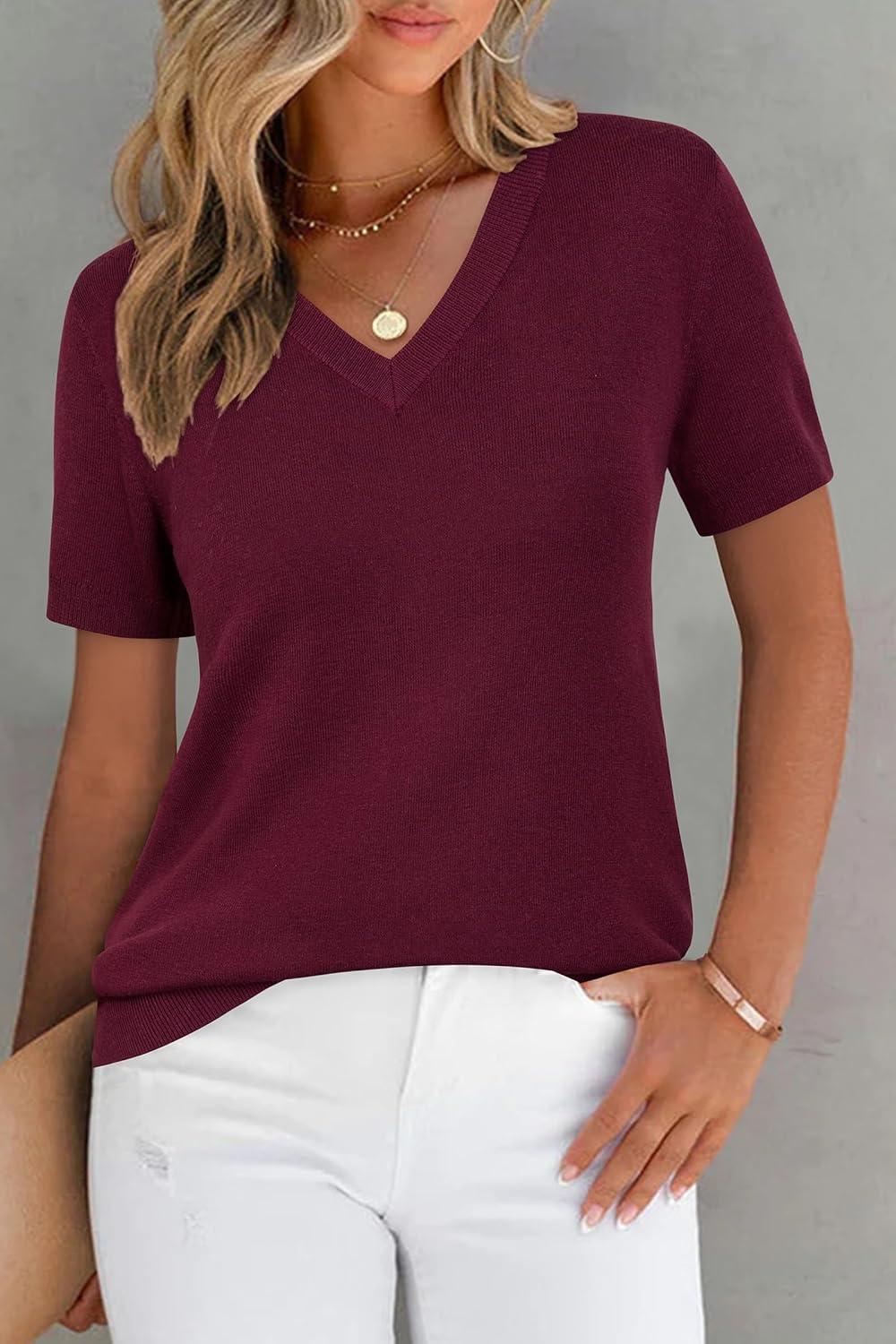 Arach&Cloz Women’s Wool Blend Summer Fall Tops Lightweight Business Casual Blouses(Wine)
