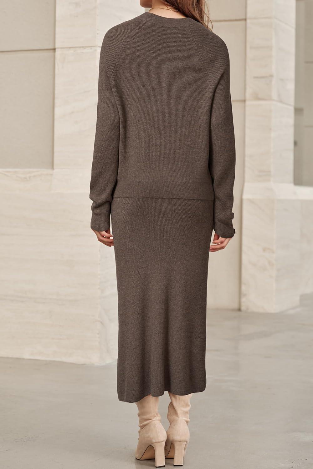 Arach&Cloz Women’s Wool Blend Sweater 2 Piece Sets Winter Business Long Sleeve Top Midi Skirts Outfits 2025(Coffee)
