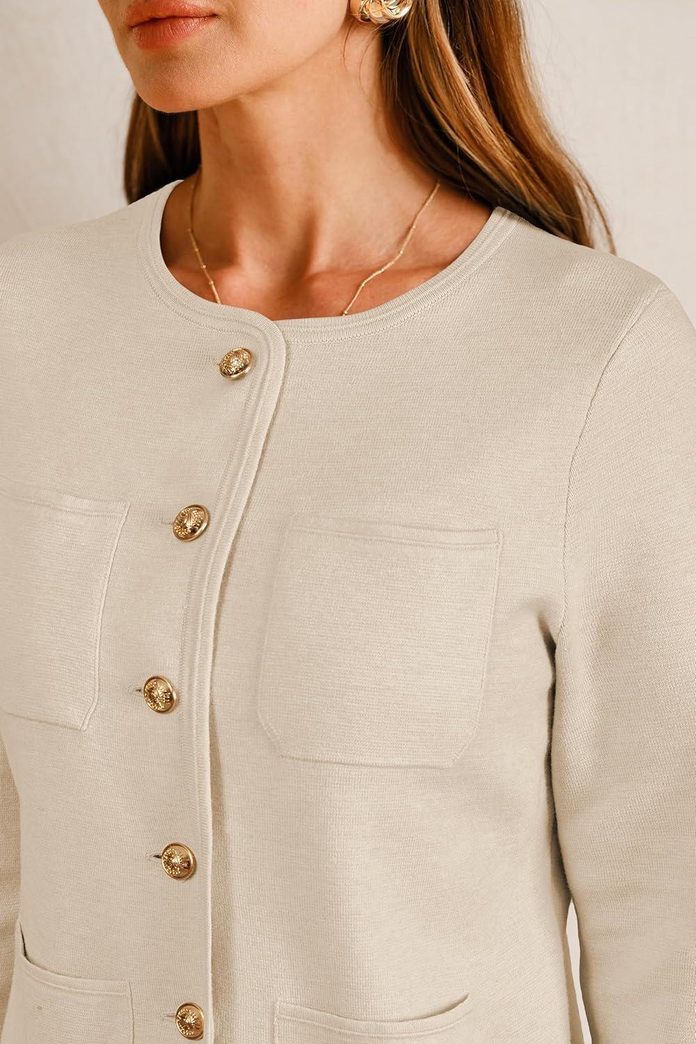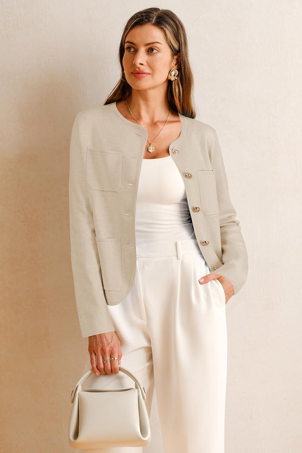 Arach&Cloz Womens Wool Blend Sweater Blazers Business Casual Jacket with Pockets 2025(Apricot)