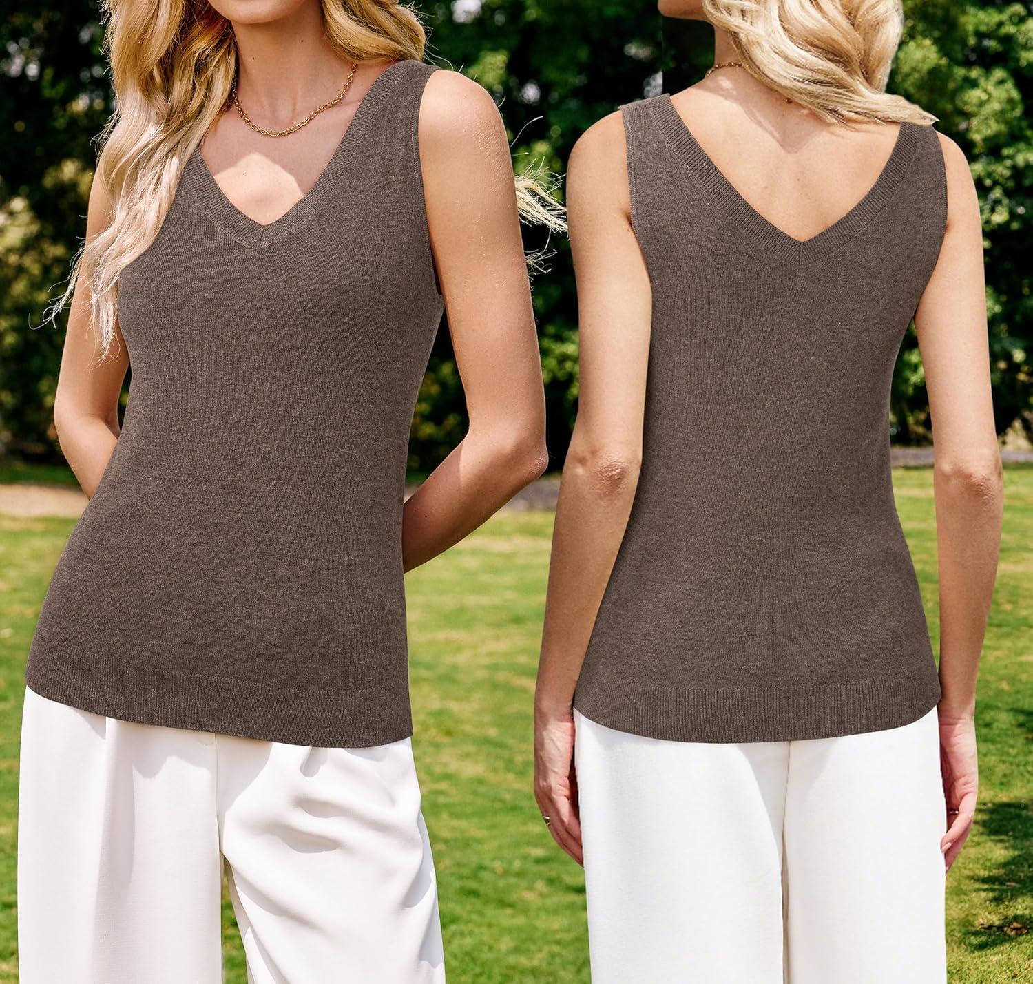 Arach&Cloz Women’s Wool Blend Sweaters Non See Through Double V-Neck All-Season Tank 2025(Coffee)