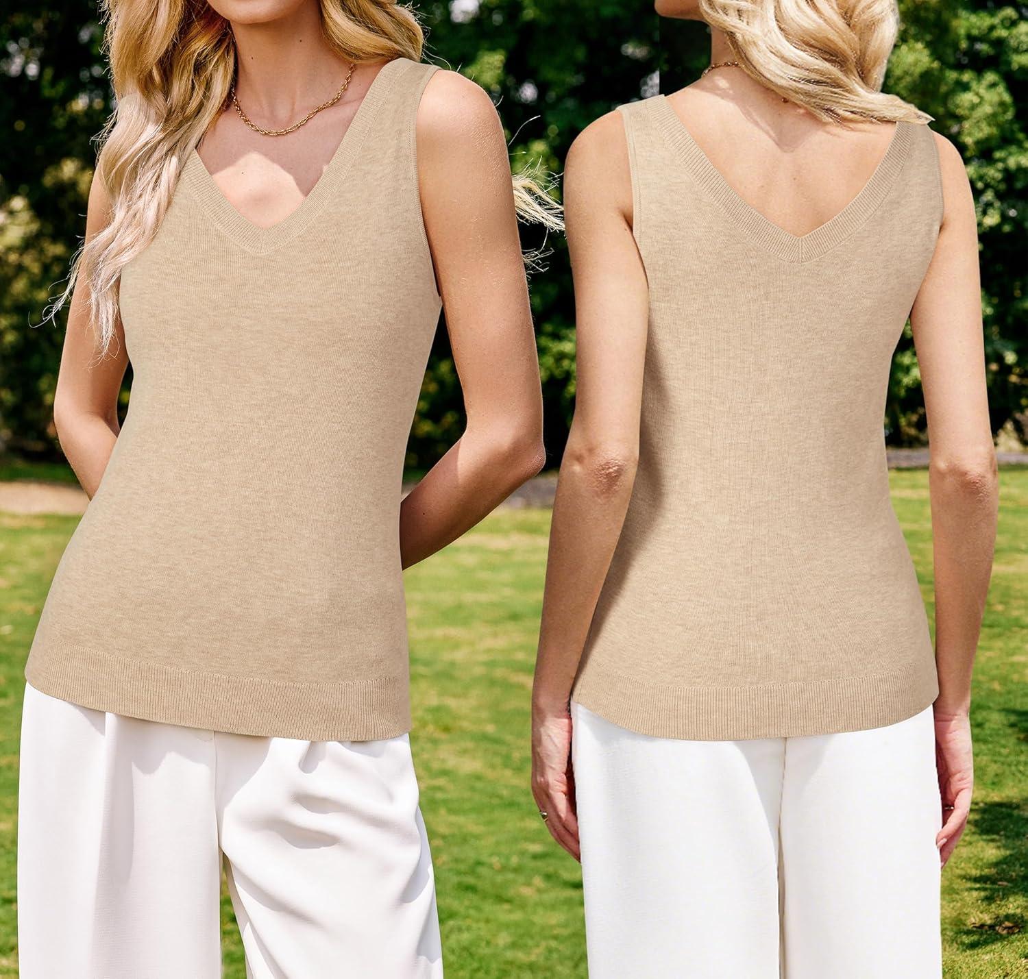 Arach&Cloz Women’s Wool Blend Sweaters Non See Through Double V-Neck All-Season Tank 2025(Khaki)