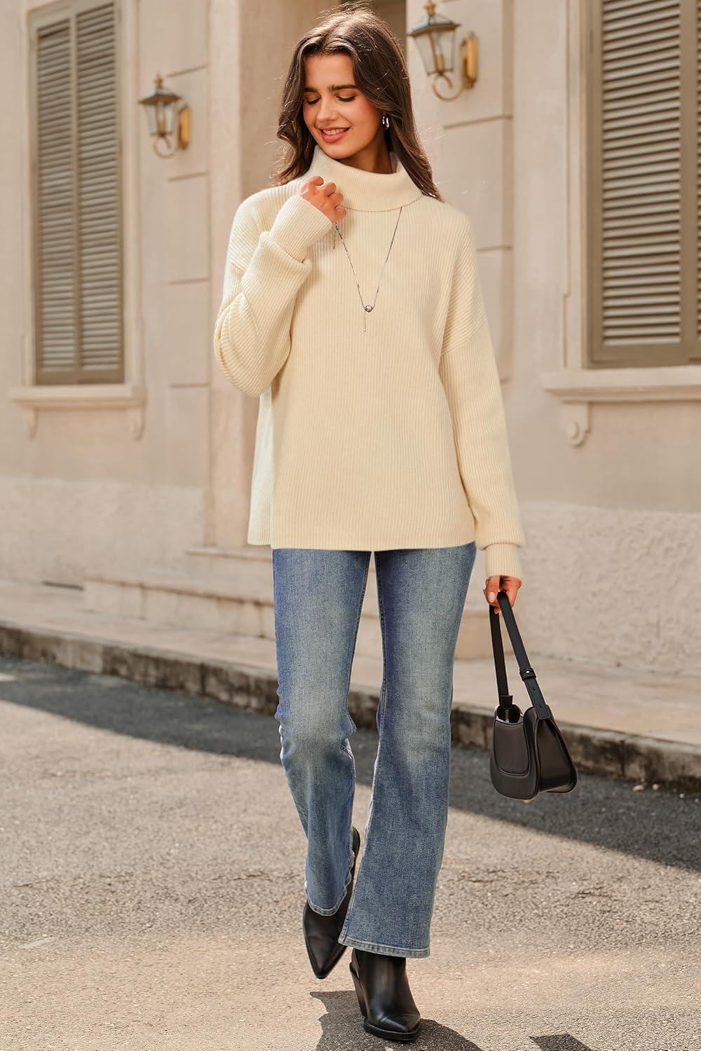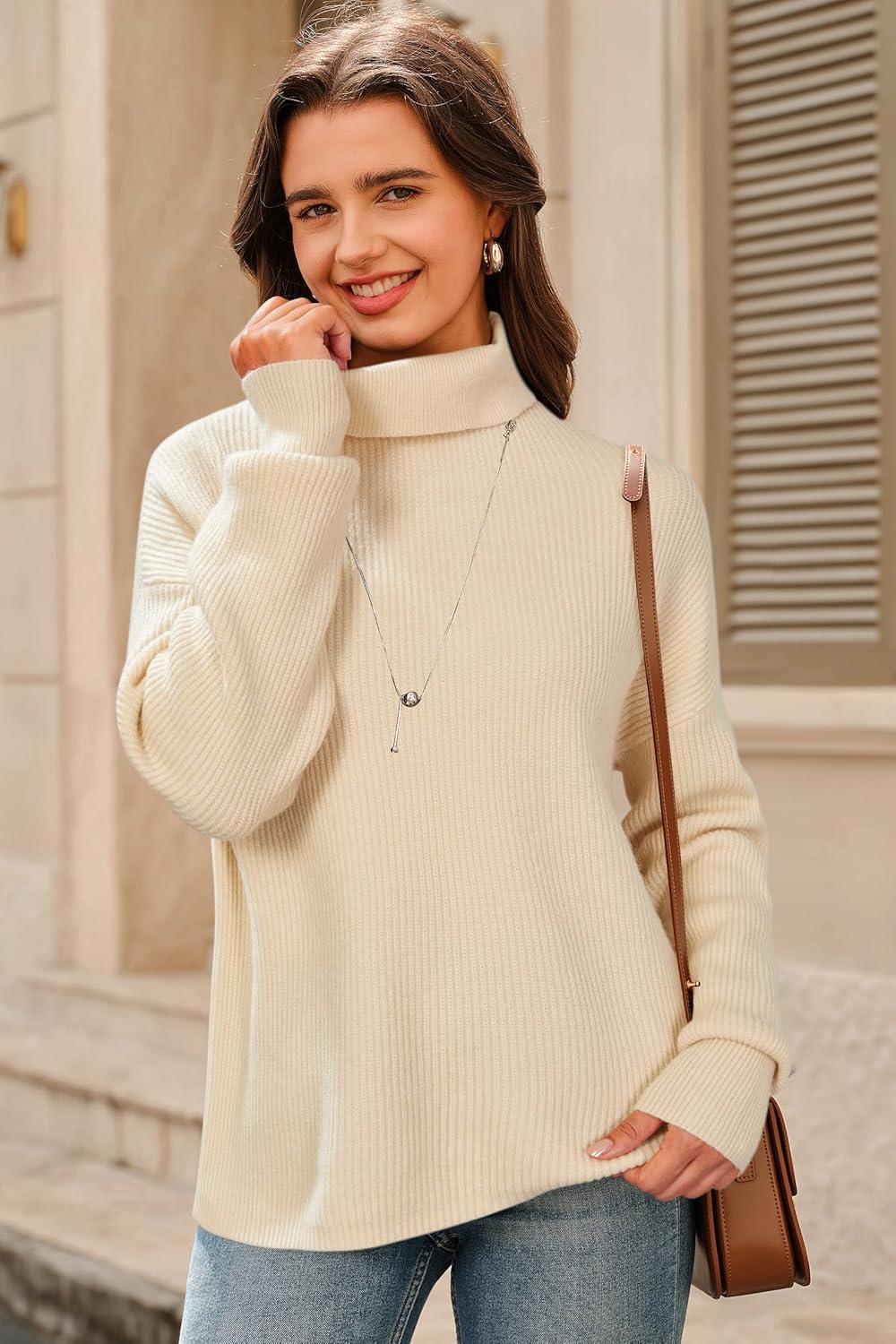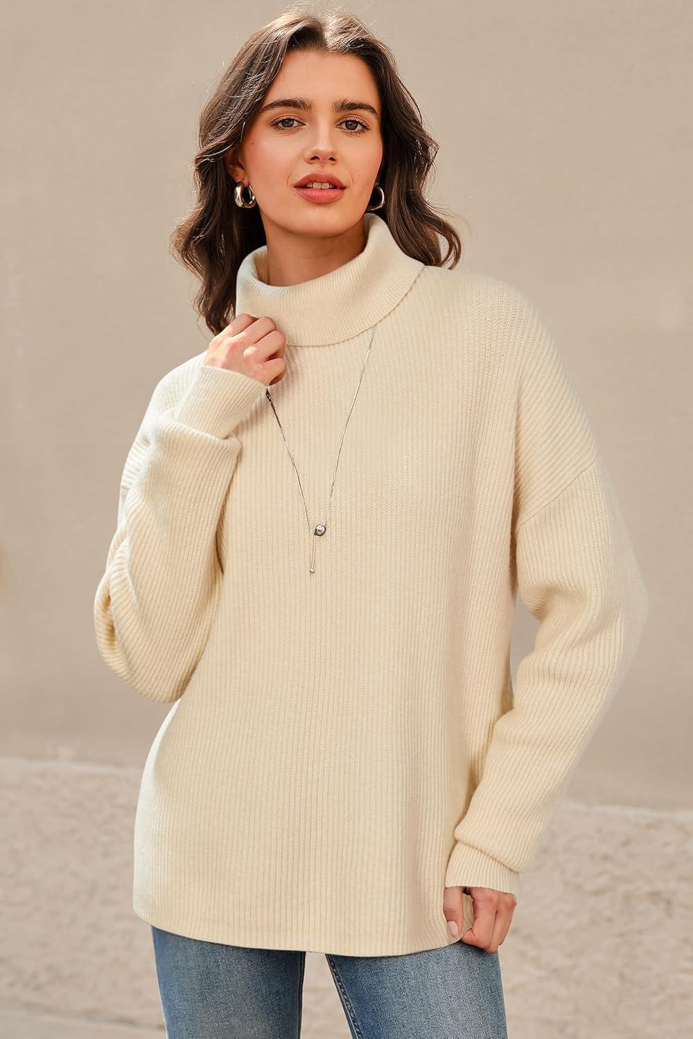 Arach&Cloz Women’s Wool Blend Turtleneck Fall Winter Casual Ribbed Oversized Sweater Tops 2025(Apricot)