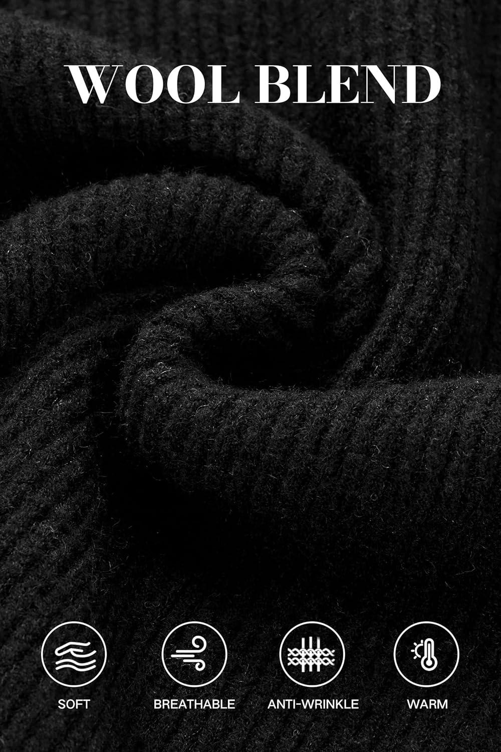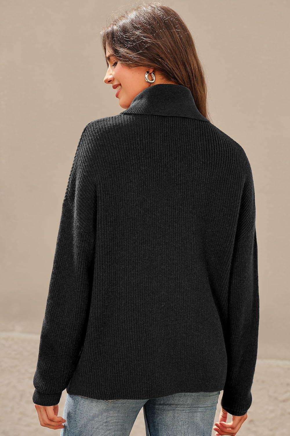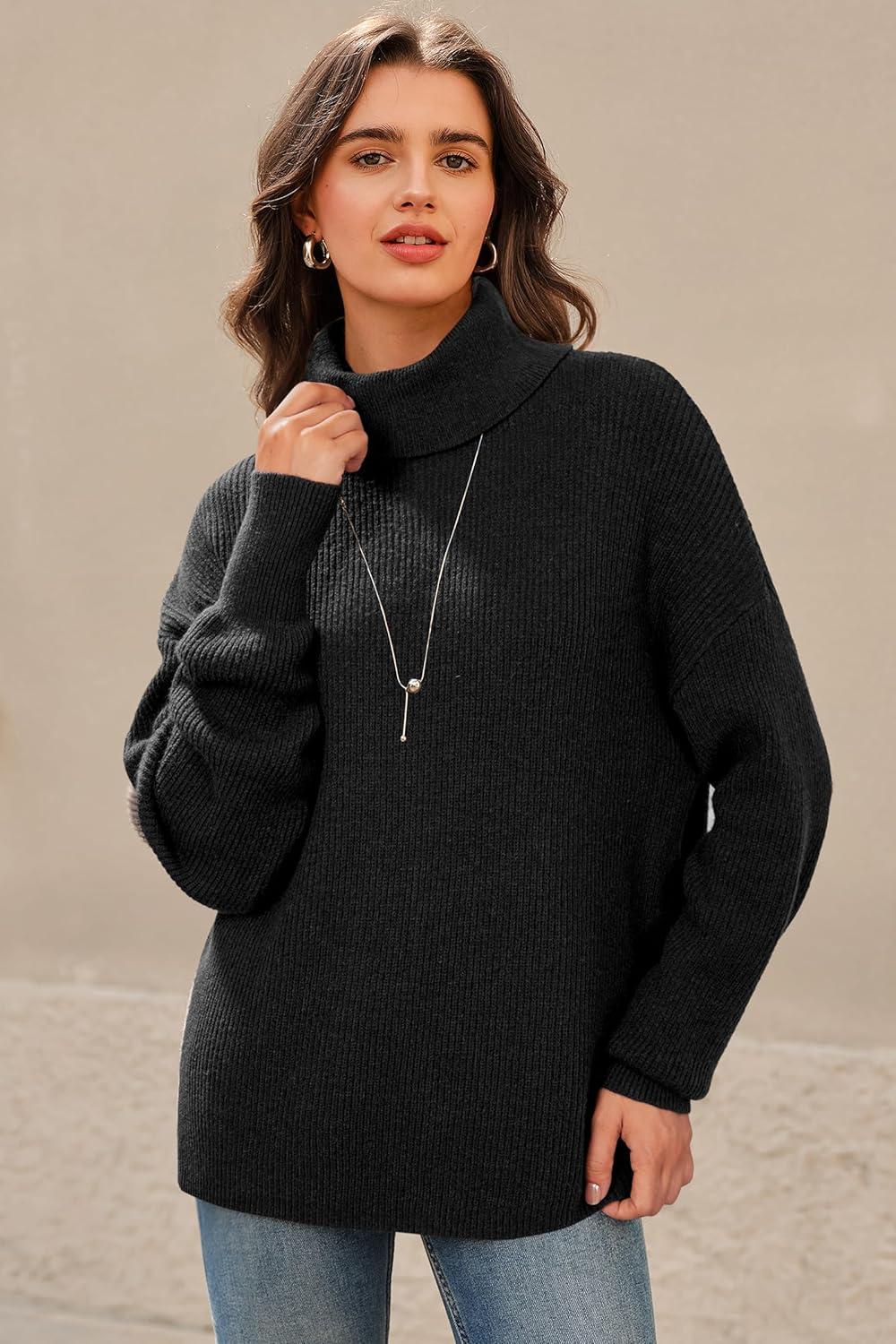 Arach&Cloz Women’s Wool Blend Turtleneck Fall Winter Casual Ribbed Oversized Sweater Tops 2025(Black)