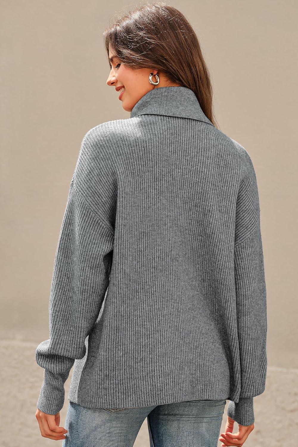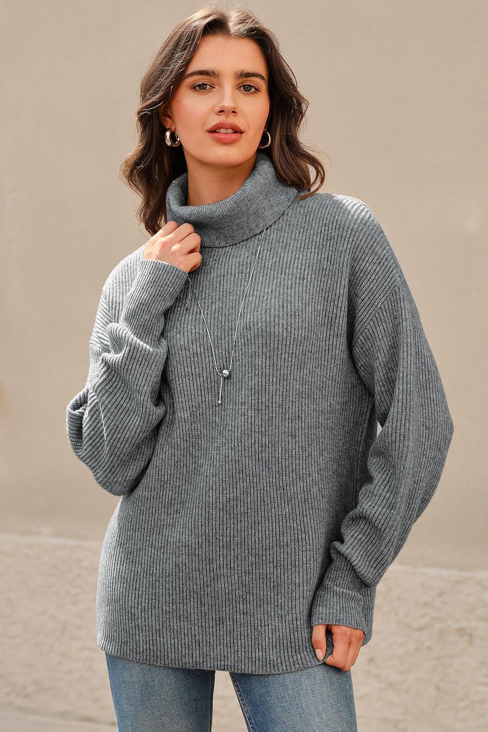 Arach&Cloz Women’s Wool Blend Turtleneck Fall Winter Casual Ribbed Oversized Sweater Tops 2025(Grey)