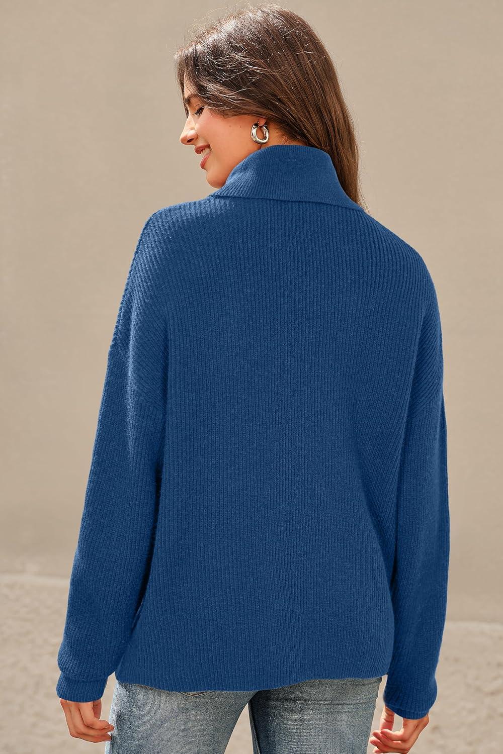 Arach&Cloz Women’s Wool Blend Turtleneck Fall Winter Casual Ribbed Oversized Sweater Tops 2025(Navy Blue)