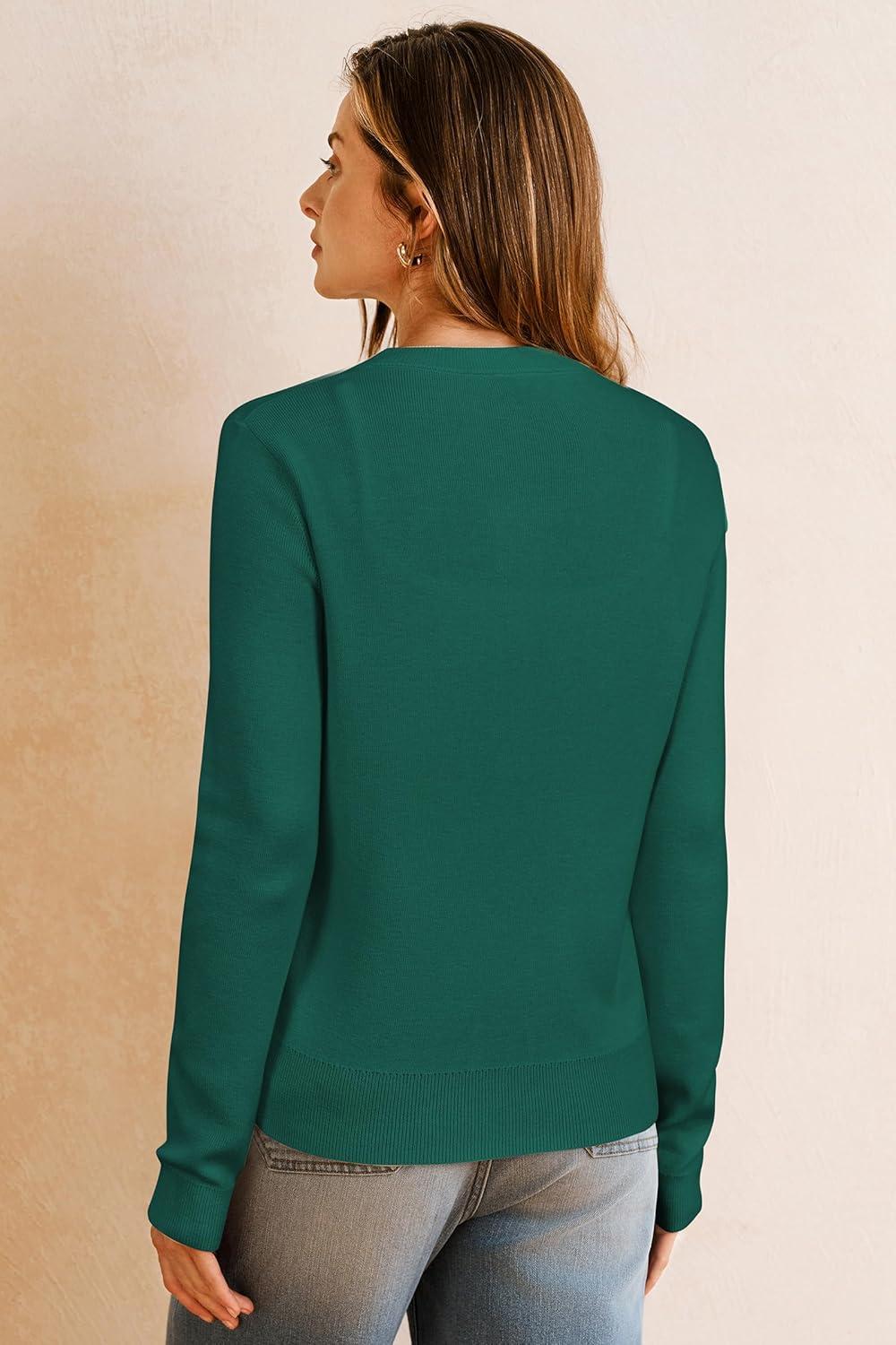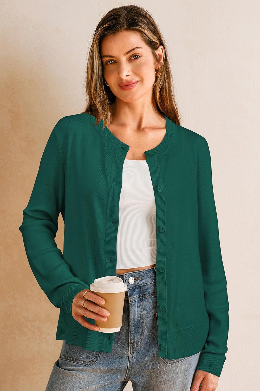 Arach&Cloz Women’s Wool Blended 2025 Fall Cardigan Sweaters Lightweight Long Sleeve Business Casual Outfits Top(Dark Green)
