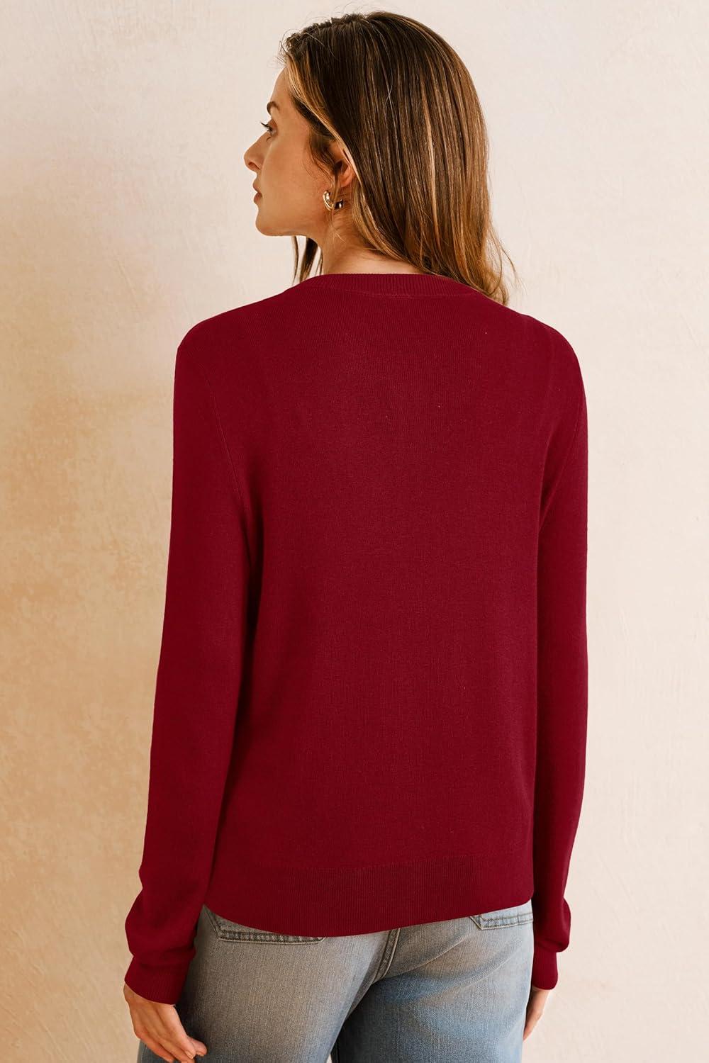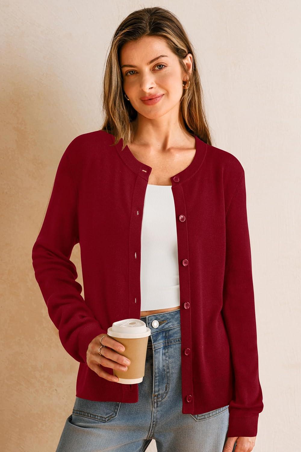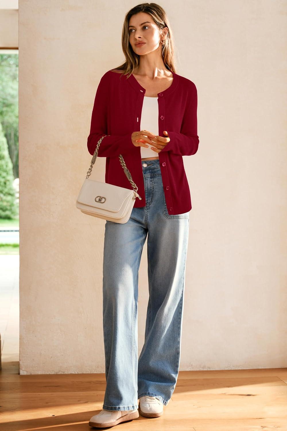 Arach&Cloz Women’s Wool Blended 2025 Fall Cardigan Sweaters Lightweight Long Sleeve Business Casual Outfits Top(Red)