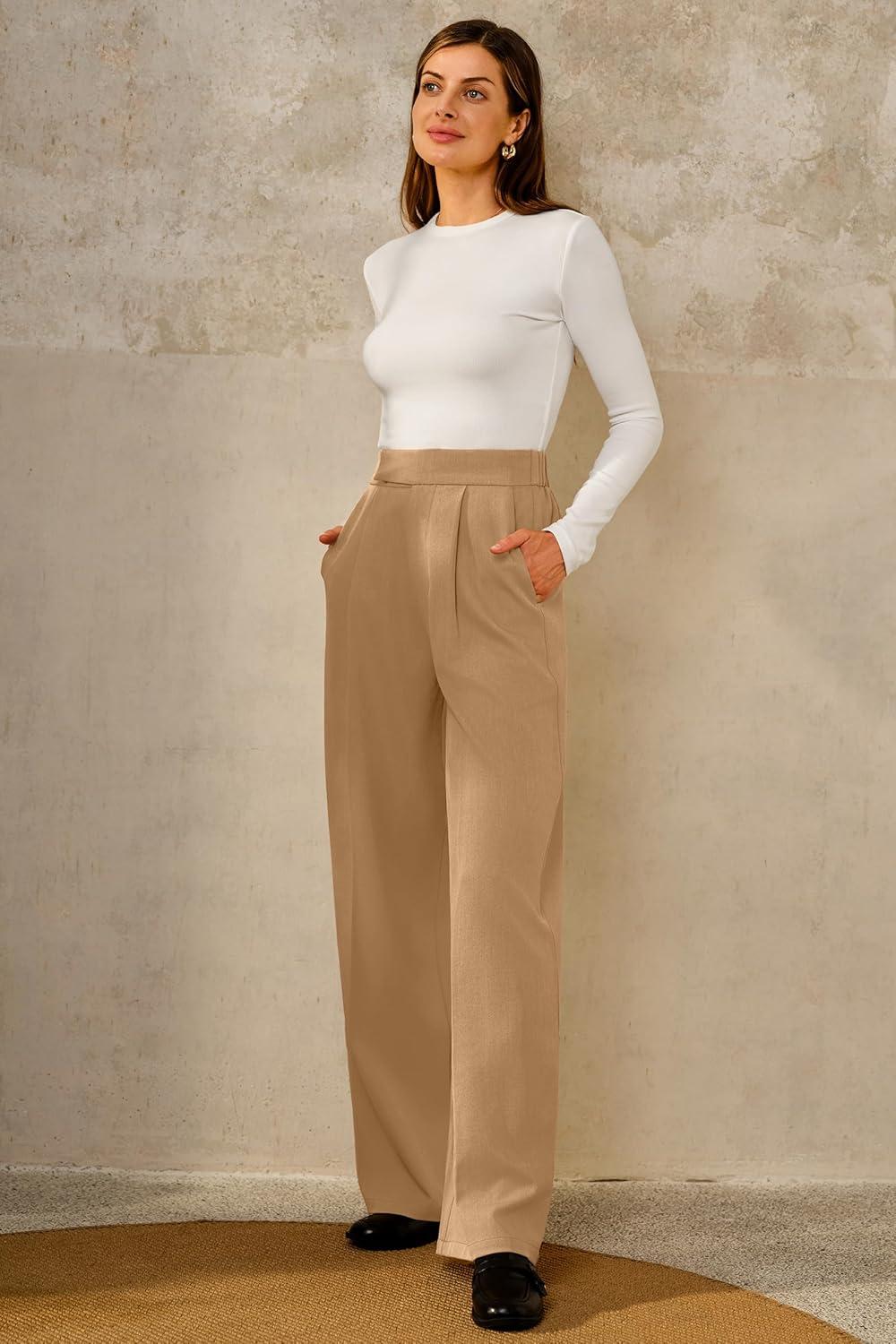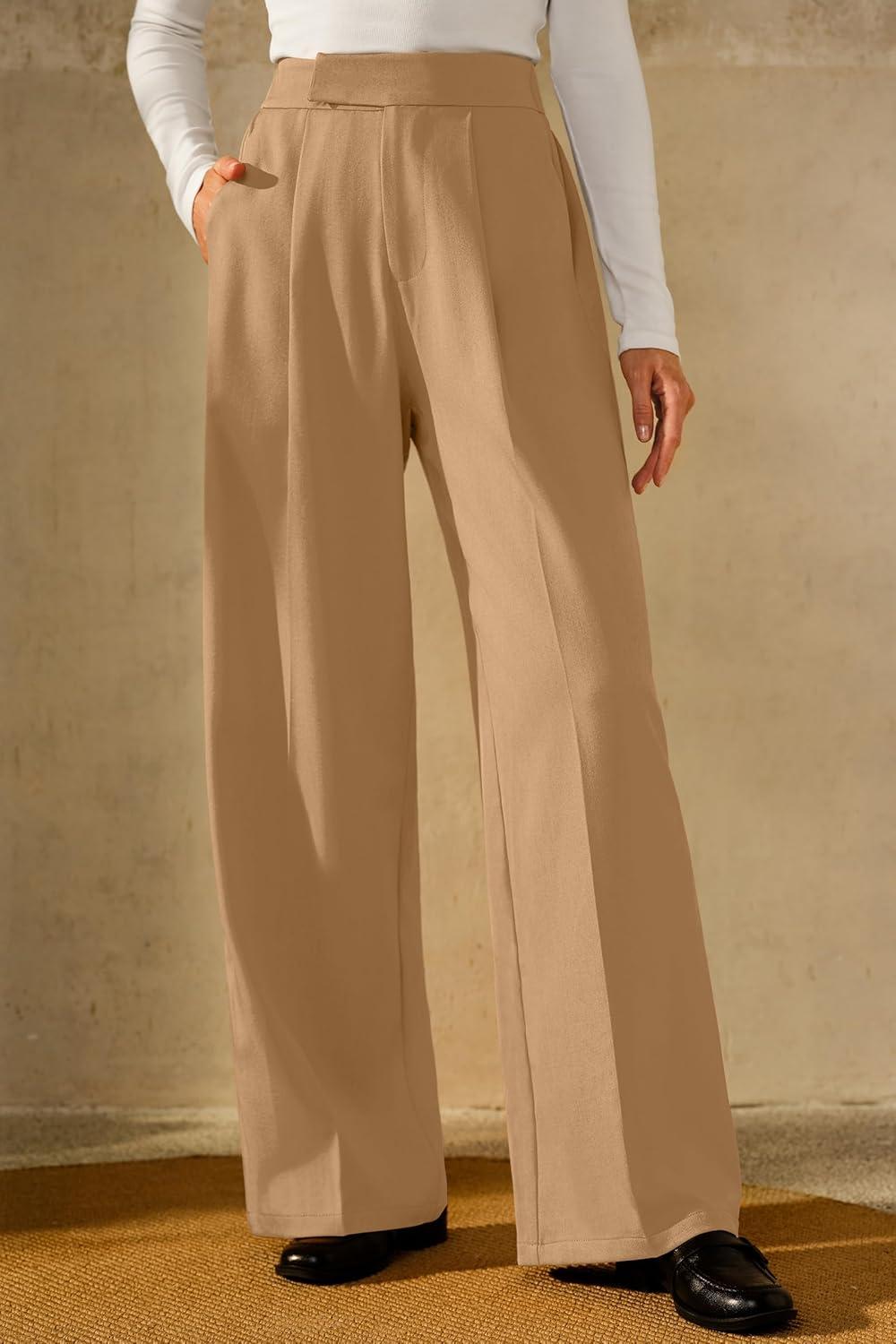 Arach&Cloz Women’s Wrinkle-Free Pleated Business Wide Leg Pants Fall 2025(Camel)