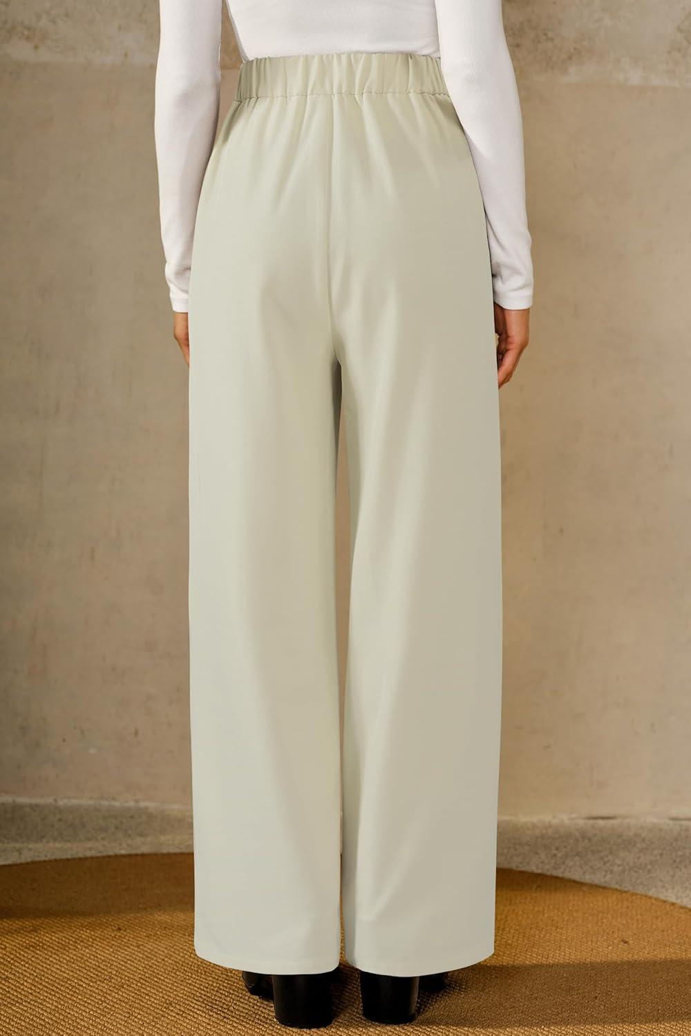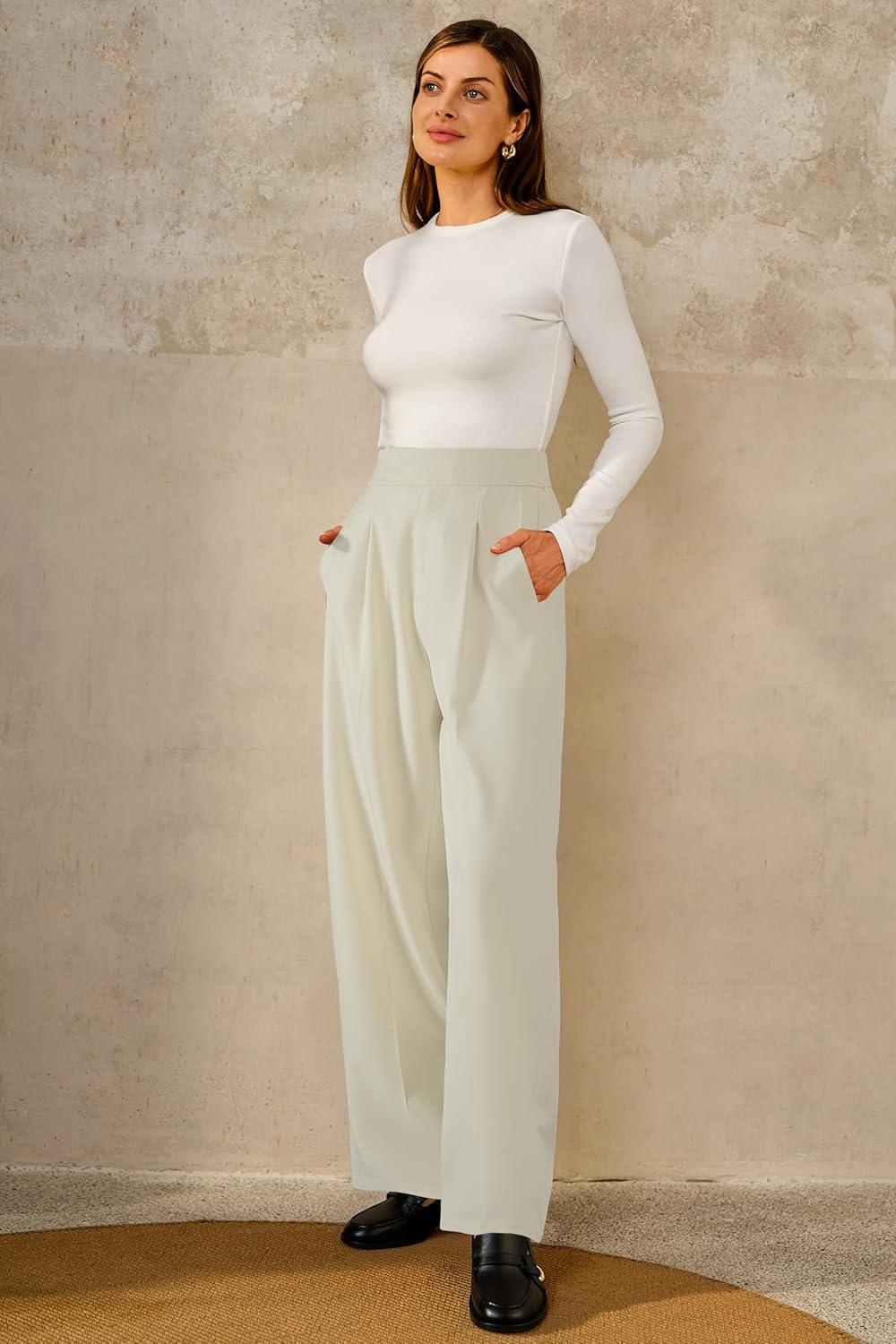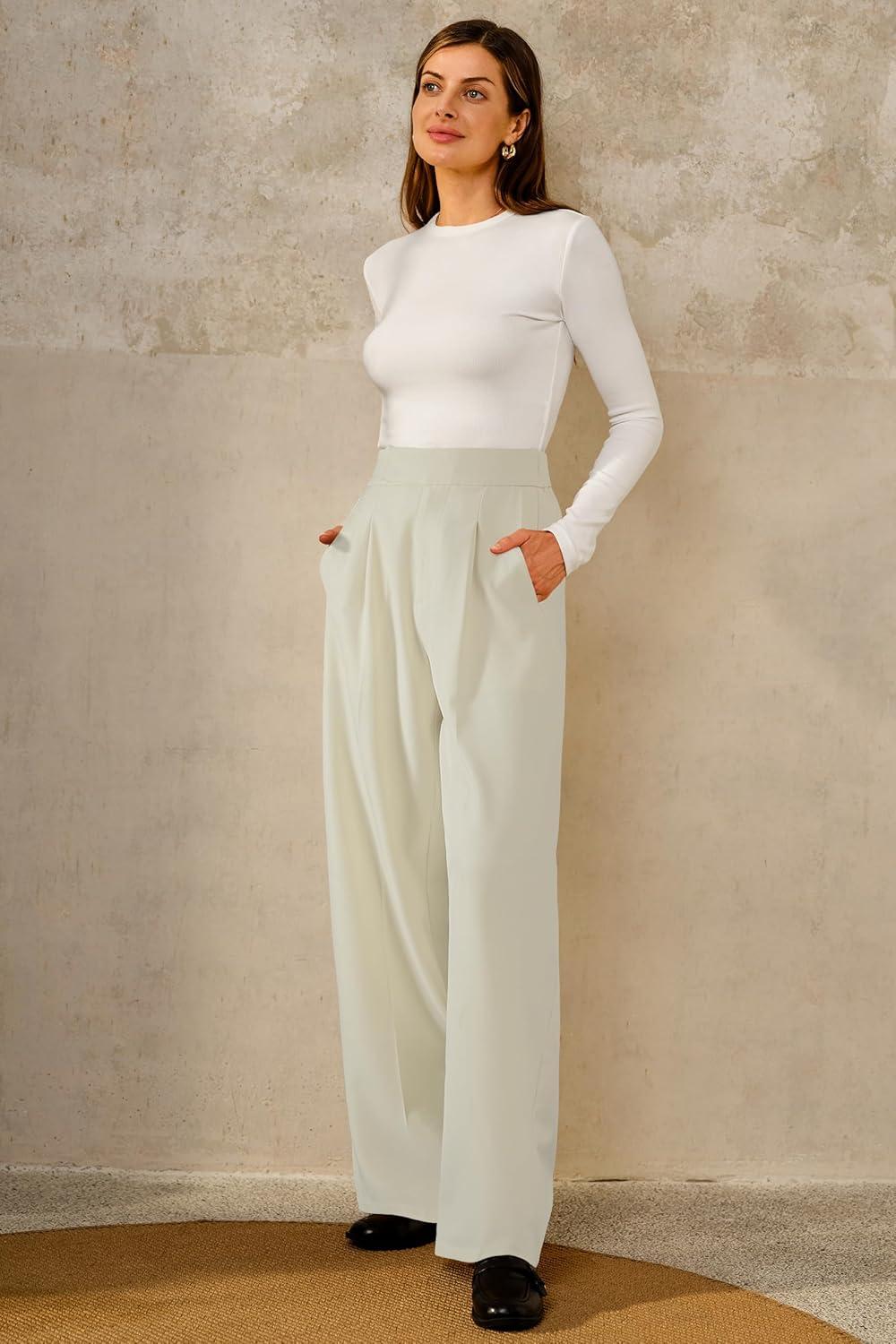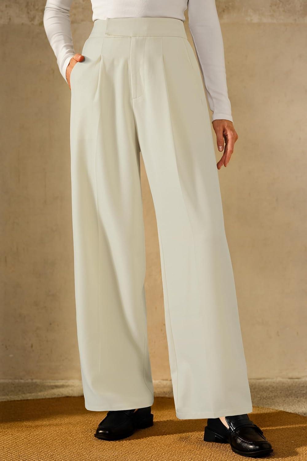 Arach&Cloz Women’s Wrinkle-Free Pleated Business Wide Leg Pants Fall 2025(Off-white)